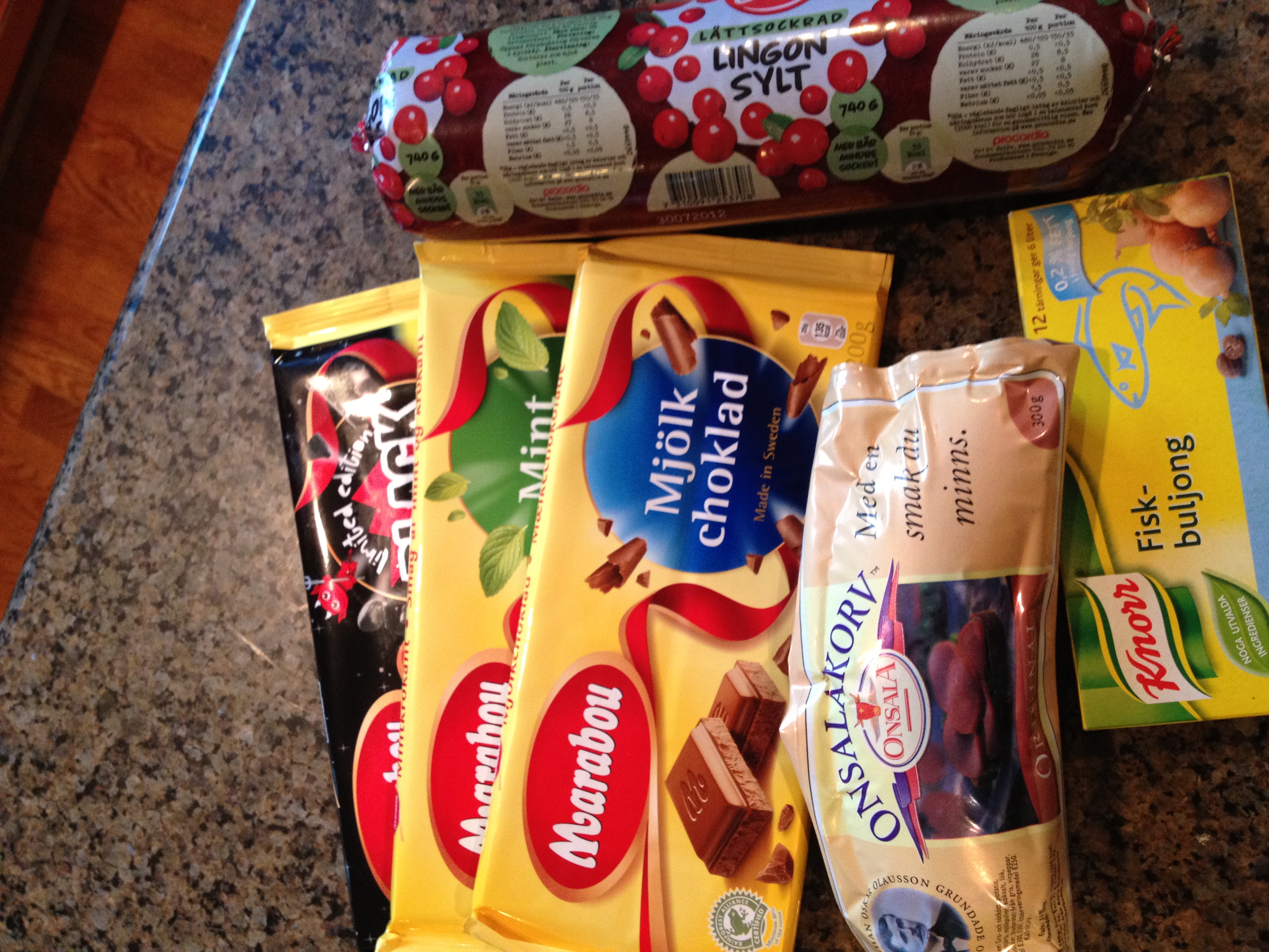 Härligt när det kommer besök med massor gott, konstigt vad fort man saknar det man inte kan få och ska saningen fram så är ju godiset inget vidare i USA.
