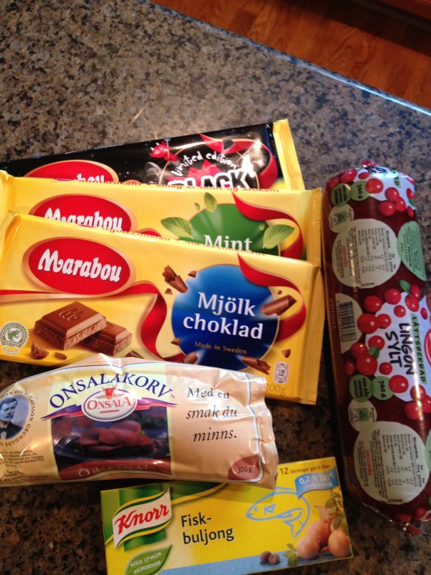 Nu har vi ju bara varit här i sju veckor ungefär, men vissa cravings uppstår efter bara några timmar, Marabou-choklad t.ex… Så detta besök var hett efterlängtat, bl.a hade de med sig detta: