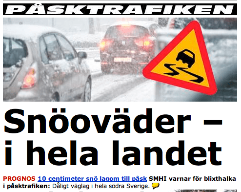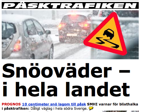 1. du vet väl att man inte kan tro på kvällstidningarna… här i lund är det soligt och härligt vårväder 🙂 glad påsk!