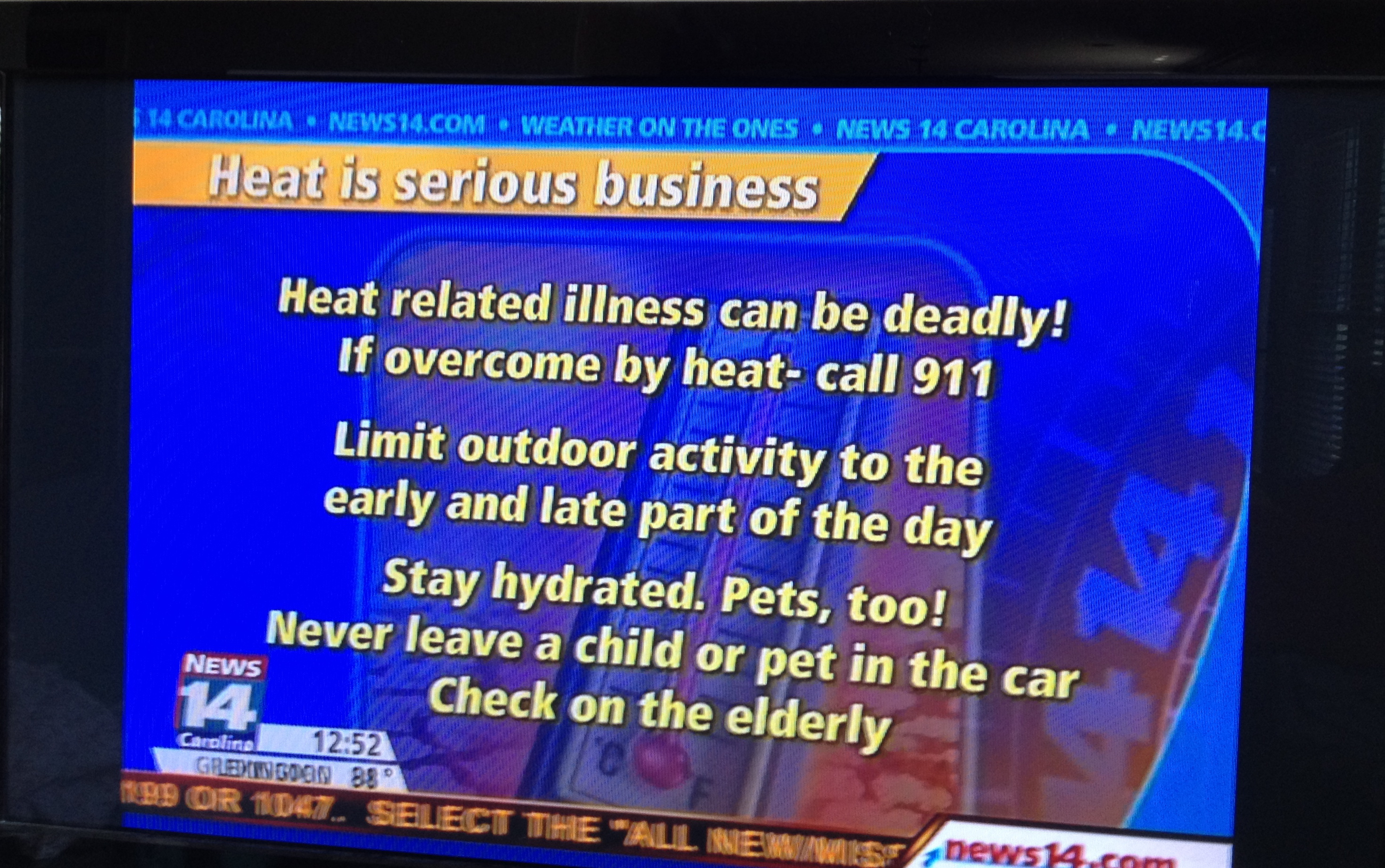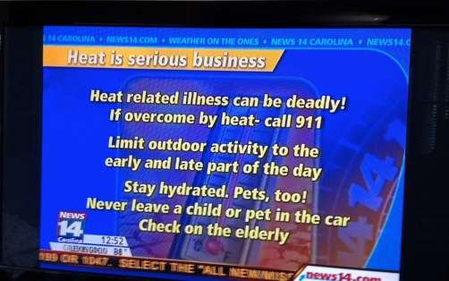 Det är VARMT! Och tydligen är det inte bara vi som tycker det. Nu varnar de till och med på TV’n om att det är ”severe heat” (svår hetta) denna helgen och att man ska hålla sig inomhus så mycket som möjligt: