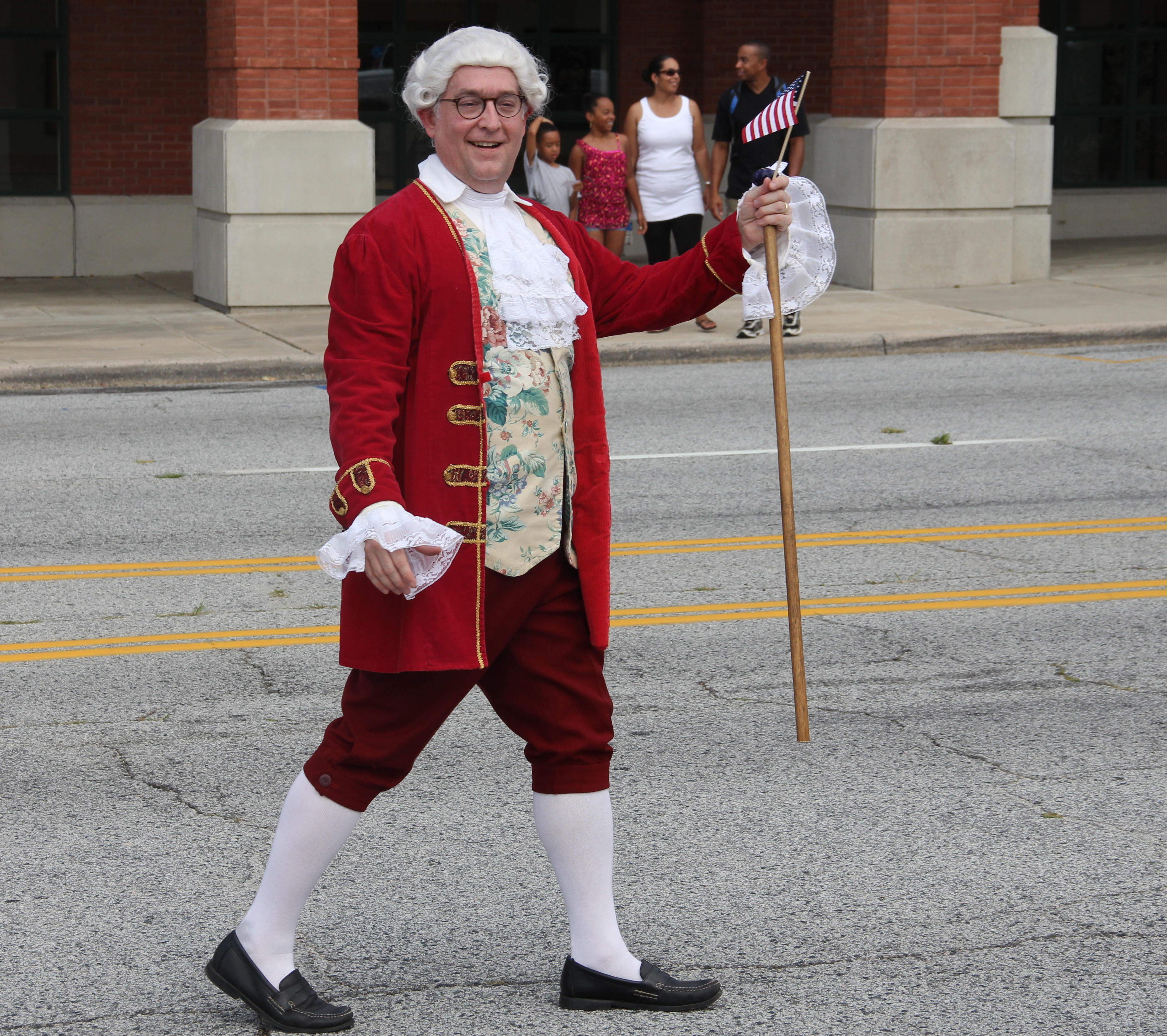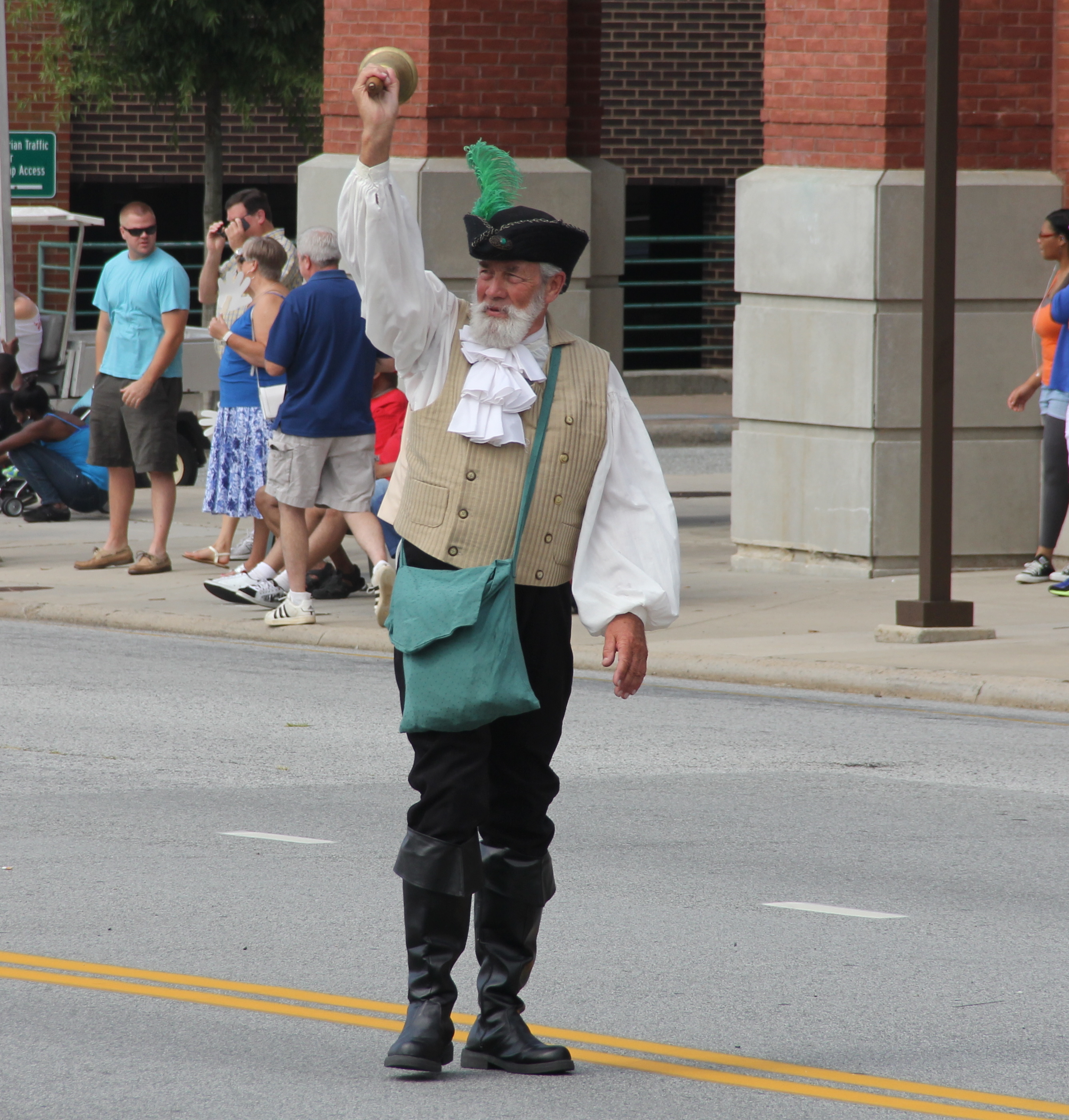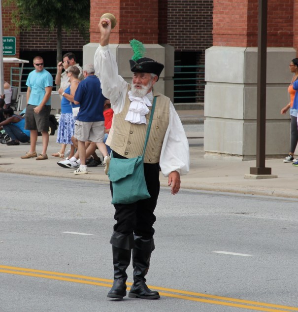 Dagen började med parad redan klockan 9.30 på morgonen. Det blev till att ställa klockan så att jag hann med långpromenaden med hundarna först innan vi stack iväg strax innan 9 för att hinna in i tid. Paraden var väl… inte riktigt vad vi väntade oss. Nu är ju detta lilla Greensboro och man kanske inte kan begära för mycket men av någon anledning hade åtminstone jag sett framför mig något ganska så storslaget med häftiga vagnar, konfetti och folk utklädda till George Washington, Lincoln och de andra grabbarna som styrt landet. Så var det inte riktigt, en del av de som var med i paraden verkade snarare ha kommit på dan innan att de skulle vara med och bara satt sig i bilen och åkt med när det var dags… Men som sagt, det var nog jag som hade lite höga förväntningar kanske, det var en lång parad åtminstone så ett och annat guldkorn fanns det ju! Och paraden började faktiskt med att Thomas Jefferson himself kom gåendes, ringandes i en klocka: