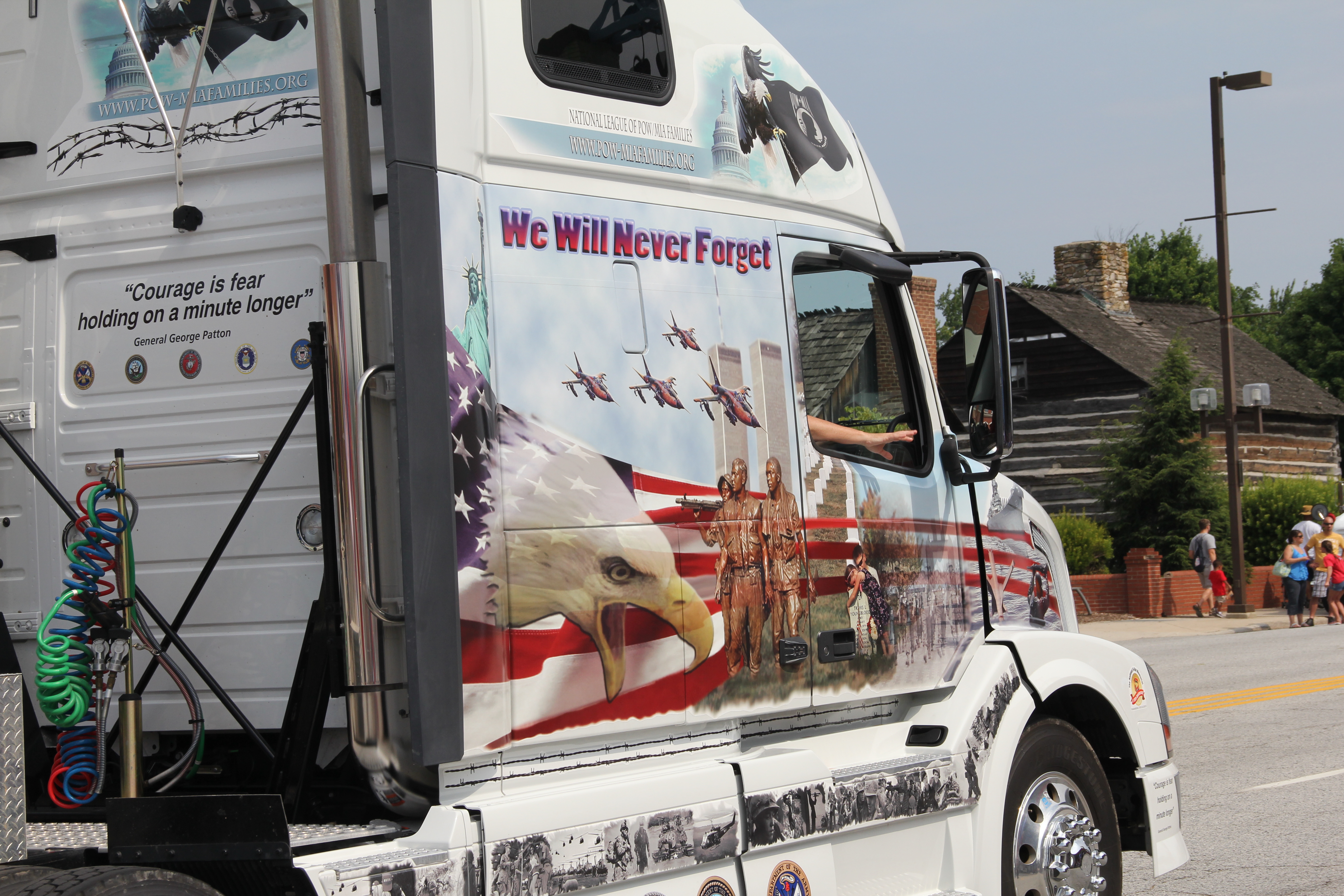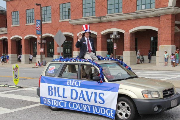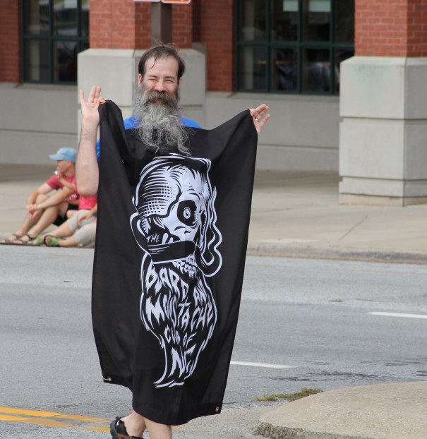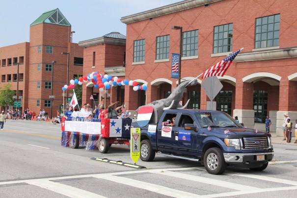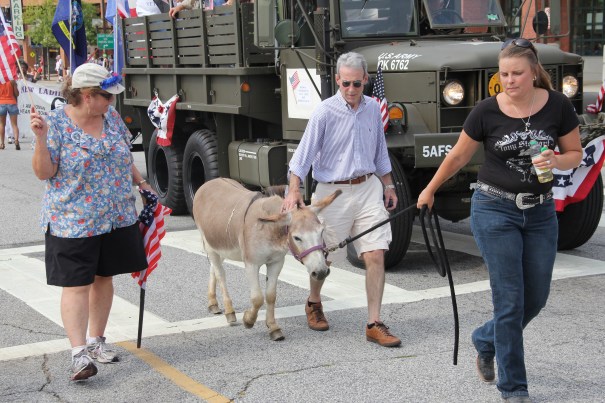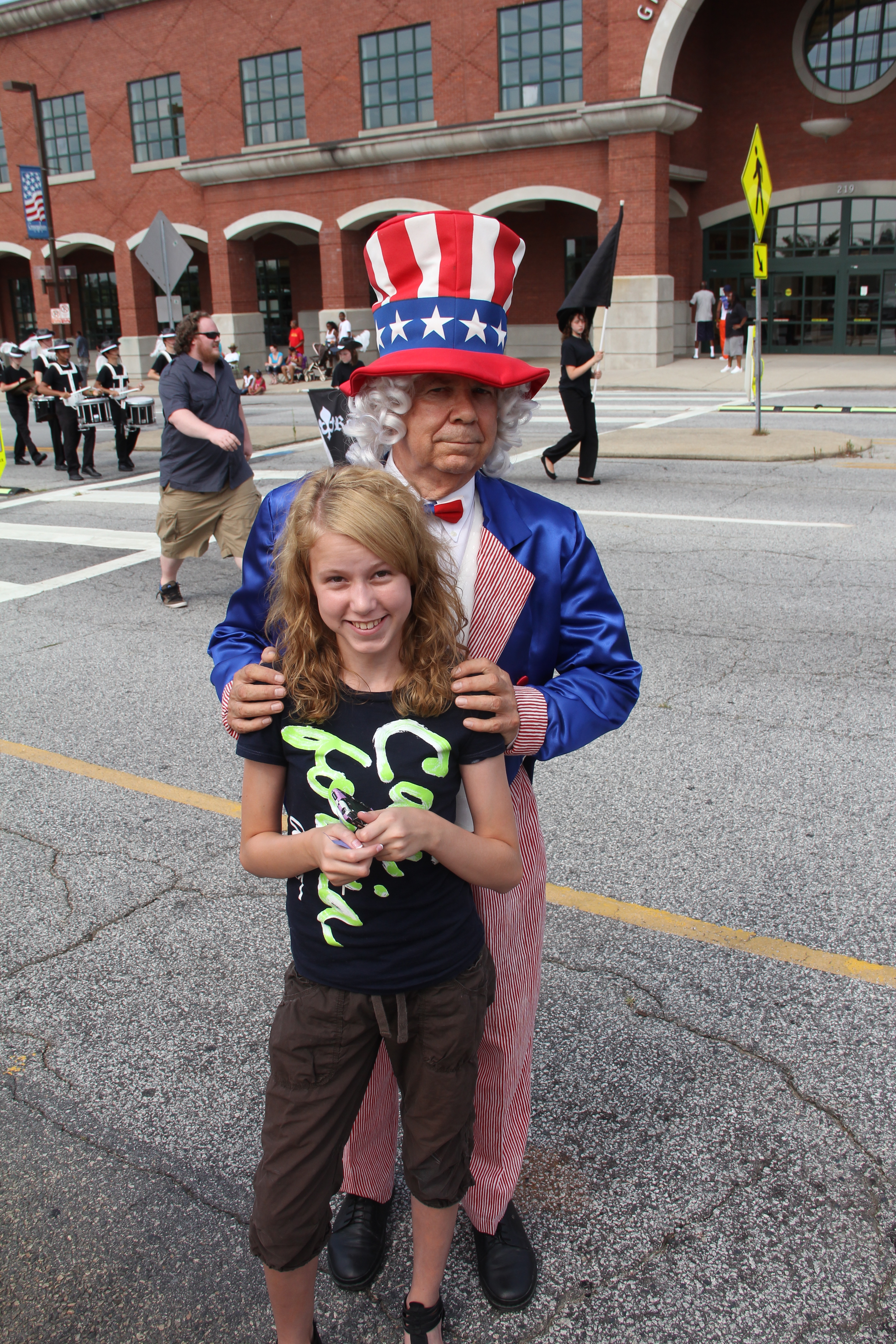 Dagen började med parad redan klockan 9.30 på morgonen. Det blev till att ställa klockan så att jag hann med långpromenaden med hundarna först innan vi stack iväg strax innan 9 för att hinna in i tid. Paraden var väl… inte riktigt vad vi väntade oss. Nu är ju detta lilla Greensboro och man kanske inte kan begära för mycket men av någon anledning hade åtminstone jag sett framför mig något ganska så storslaget med häftiga vagnar, konfetti och folk utklädda till George Washington, Lincoln och de andra grabbarna som styrt landet. Så var det inte riktigt, en del av de som var med i paraden verkade snarare ha kommit på dan innan att de skulle vara med och bara satt sig i bilen och åkt med när det var dags… Men som sagt, det var nog jag som hade lite höga förväntningar kanske, det var en lång parad åtminstone så ett och annat guldkorn fanns det ju! Och paraden började faktiskt med att Thomas Jefferson himself kom gåendes, ringandes i en klocka: