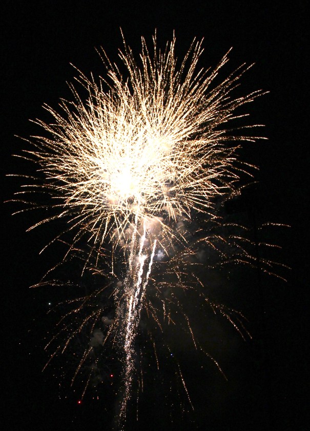 Tyvärr lyckades dock inte rekordförsöket, vi var strax under 3000 personer där. Efter detta åkte vi faktiskt hem ett par timmar, det var för varmt för att man skulle orka med att dra runt på stan. Frampå kvällen åkte vi ner igen i alla fall, och gick till Coliseum för att se fyrverkeriet. Det var maffigt och…långt. Väldigt långt. Faktum är att det blev lite tröttsamt till slut, det höll på i 36 minuter (!) och man kan inte tycka att varenda raket som skjuts upp är så fantastisk gång på gång på gång i 36 minuter… Det var en del uppträdanden och ceremonier innan som avslutades med att en orkester spelade medan fyrverkeriet höll på. Tyvärr lyckades de inte synka fyrverkeriet och musiken särskilt bra och dessutom sköt de hela tiden upp raketerna en och en med ett litet mellanrum emellan så det var väl det som gjorde att det kändes lite utdraget. Hade de tryckt ihop det lite med flera raketer nästan samtidigt hade det blivit otroligt häftigt. Man tycker ju att de borde vara proffs på sånt här men GP’s fyrverkeri på nyårsafton är betydligt bättre med mer action! Nu låter jag jättegnällig märker jag och det är inte riktigt meningen, vi blev bara lite förvånade över att det inte var… proffsigare. Men maffigt var det, absolut! Happy 4th of July! 🙂