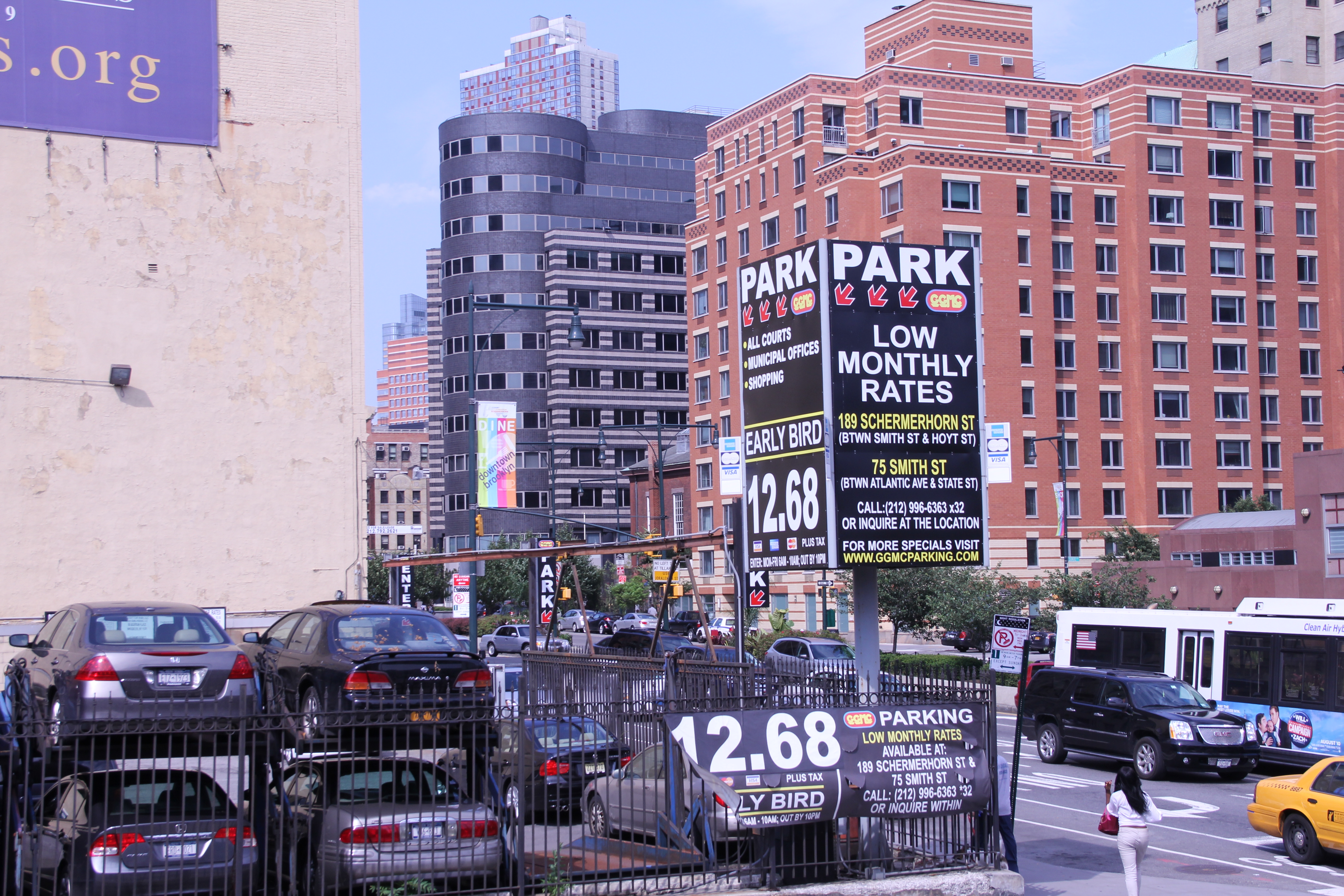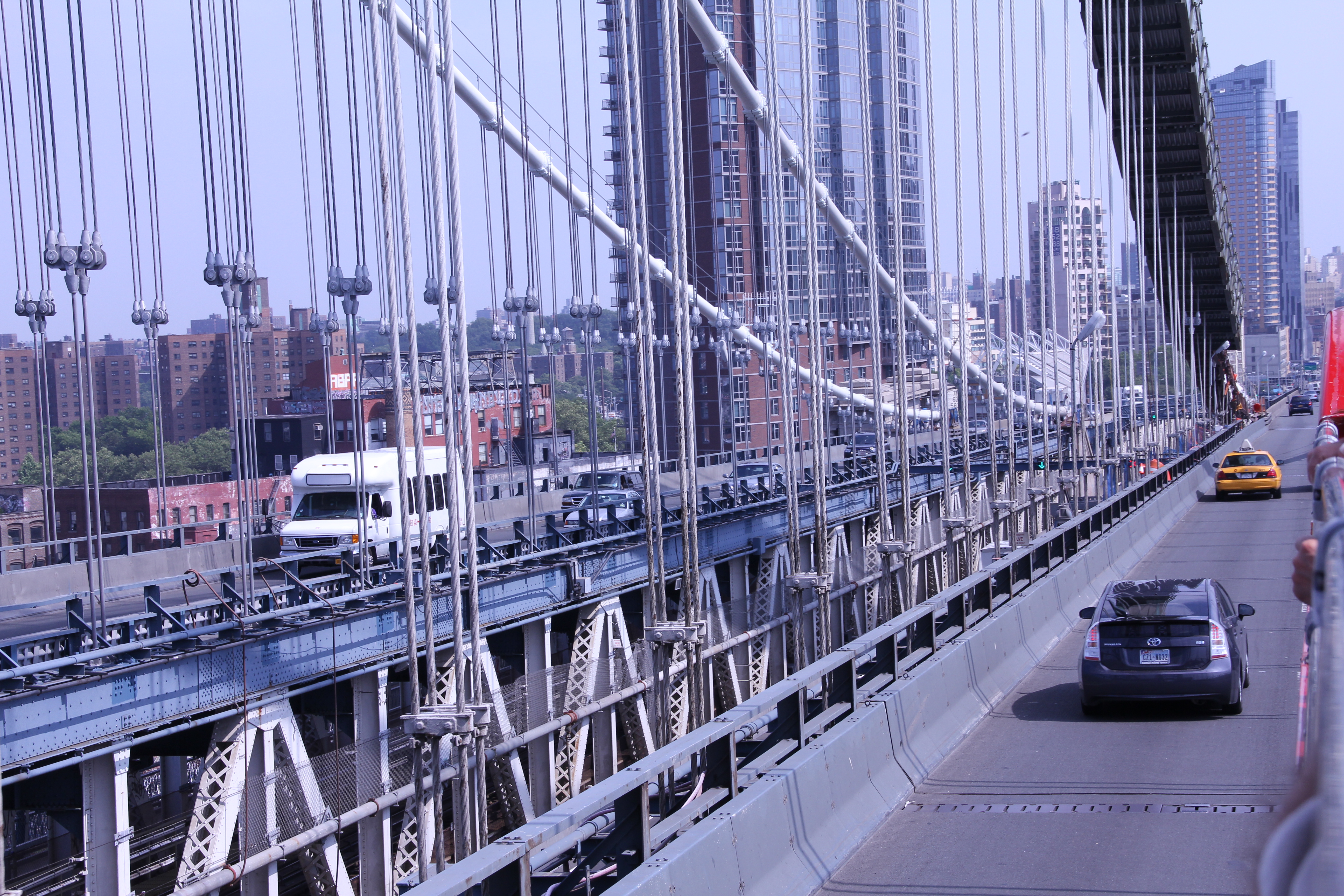 Vid Battery Park hoppade vi av bussen och klev på en som gick ut till Brooklyn. Där har vi aldrig varit förut, så det var kul att se hur det såg ut där. Betydligt mer i ordning än vad man kan tro, hör man ”Brooklyn” så tänker man ju oftast på slumområden och gäng som drar runt och attackerar allt som är löst, men riktigt så var det inte! 🙂 Åtminstone inte där som turistbussen åkte… Vi åkte dit via Manhattan Bridge, eftersom Brooklyn Bridge är låg på sina ställen så vi som satt på taket på bussen hade blivit ett huvud kortare om vi åkte där.
