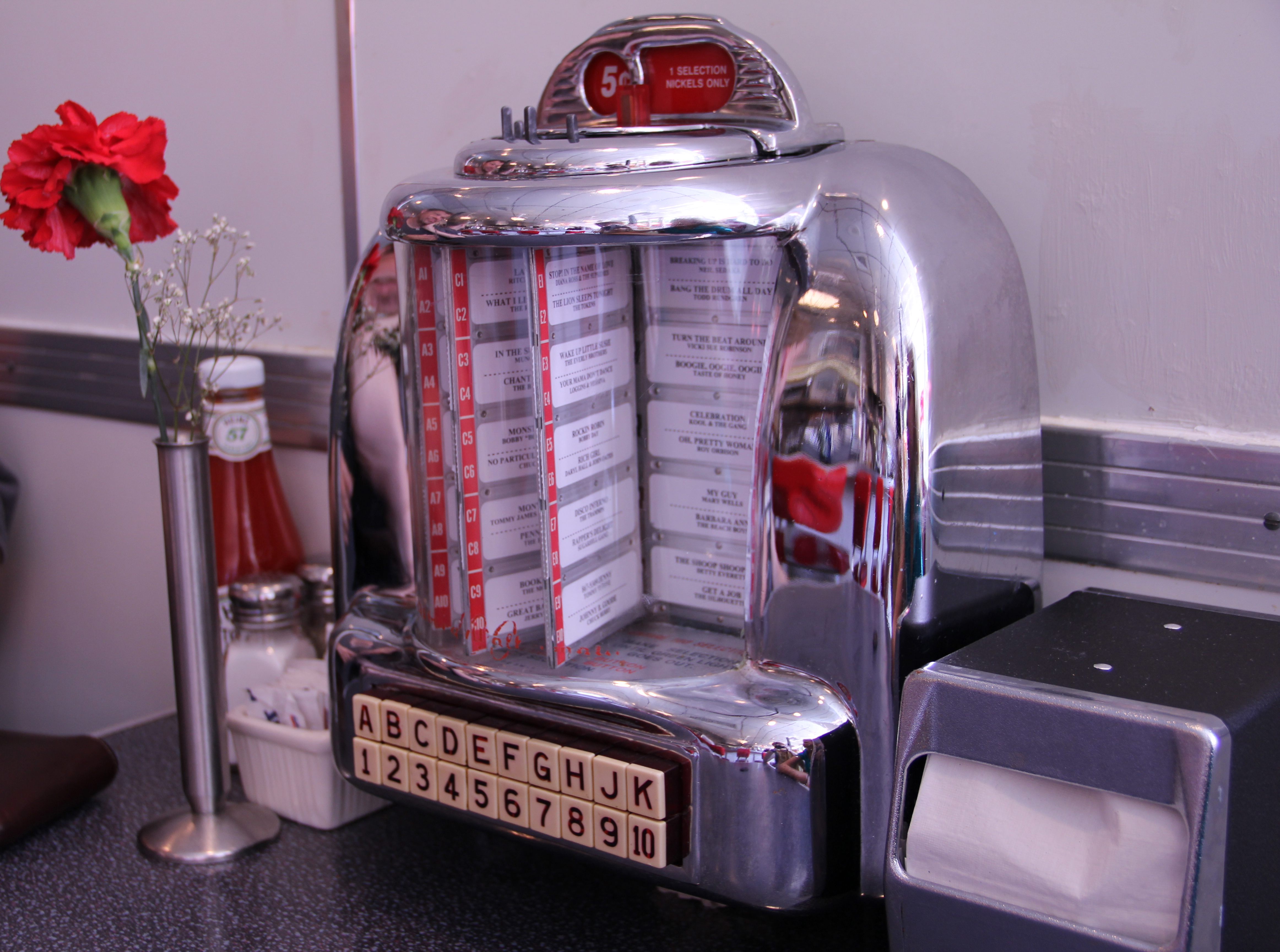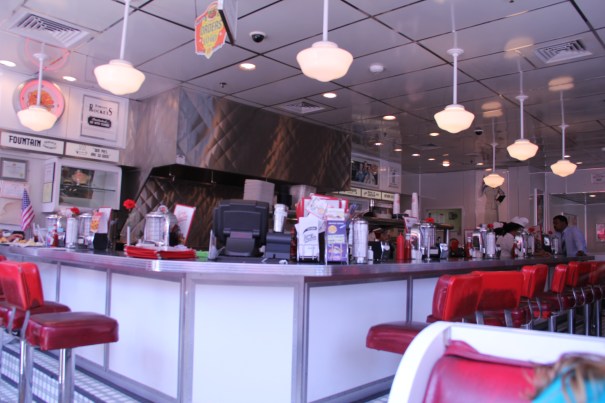 Vi hade tänkt oss att vi skulle gå in och fika där, men det gick inte. De hade inget konditori, utan det var ”bara” bageri. Lite synd! Istället gick vi till Johnny Rockets och tog en milkshake. Johnny Rockets har ju som sitt signum att restaurangerna ska se ut som på 50-talet, så de passade verkligen bra in här i Hoboken: