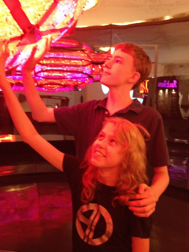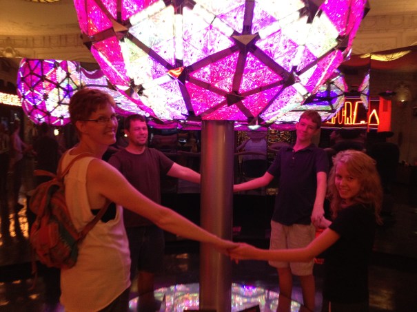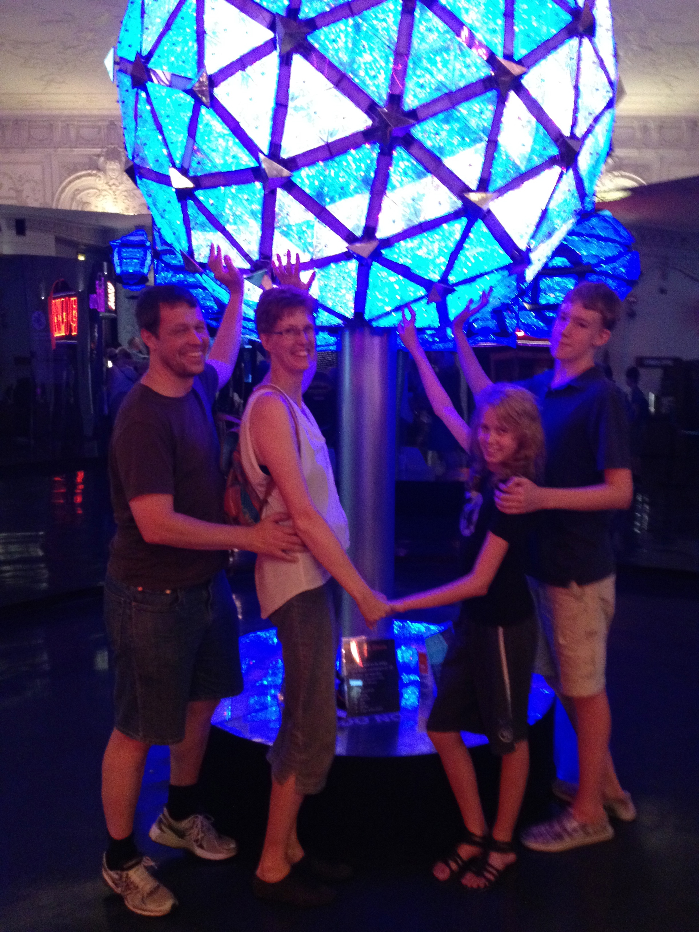 Vi var även inne på Visitors center på Times Square tidigare på dagen, och blev fotograferade av en av vakterna där. En jätterolig farbror som tog sitt arbete som ”turistfotograf” på stort allvar och fick alla att posera runt en stor ljusglob. Det var ingen idé att komma med egna idéer om hur vi skulle stå, han bestämde allt. ”Trust me, I’m gay, I know what I’m doing!” (lita på mig, jag är bög så jag vet vad jag gör!) 🙂
