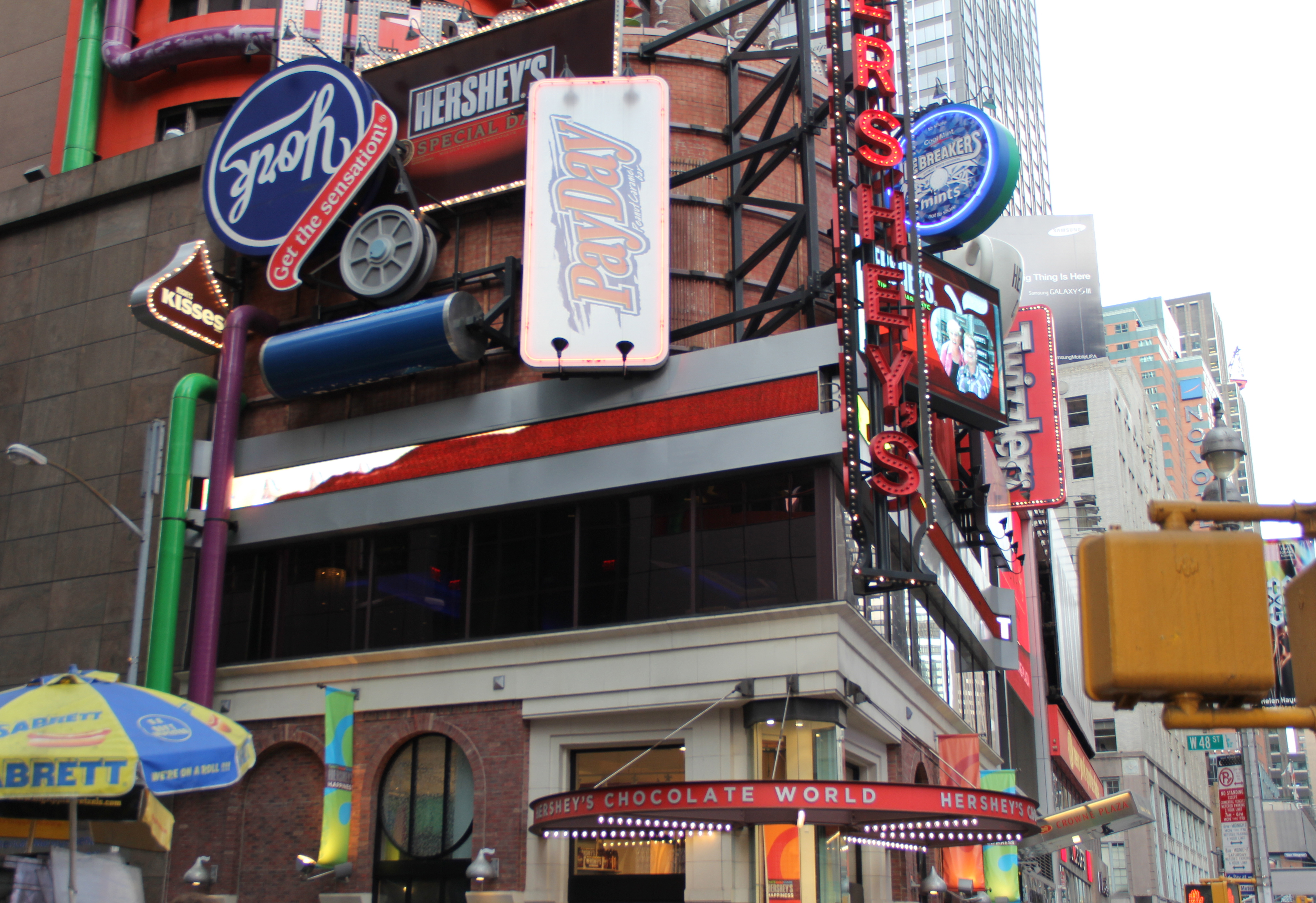 Efter att vi varit i Hoboken delade vi upp oss lite. Jag och Tess gick och shoppade kläder, medan Björn och Max åkte till en Warhammer-affär. Efter ett tag kom jag och Tess till Times Square, och gick till Hershey’s-affären som ligger där och som vi tänkt gå till länge men det har aldrig blivit av:
