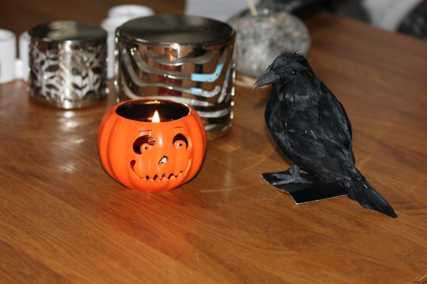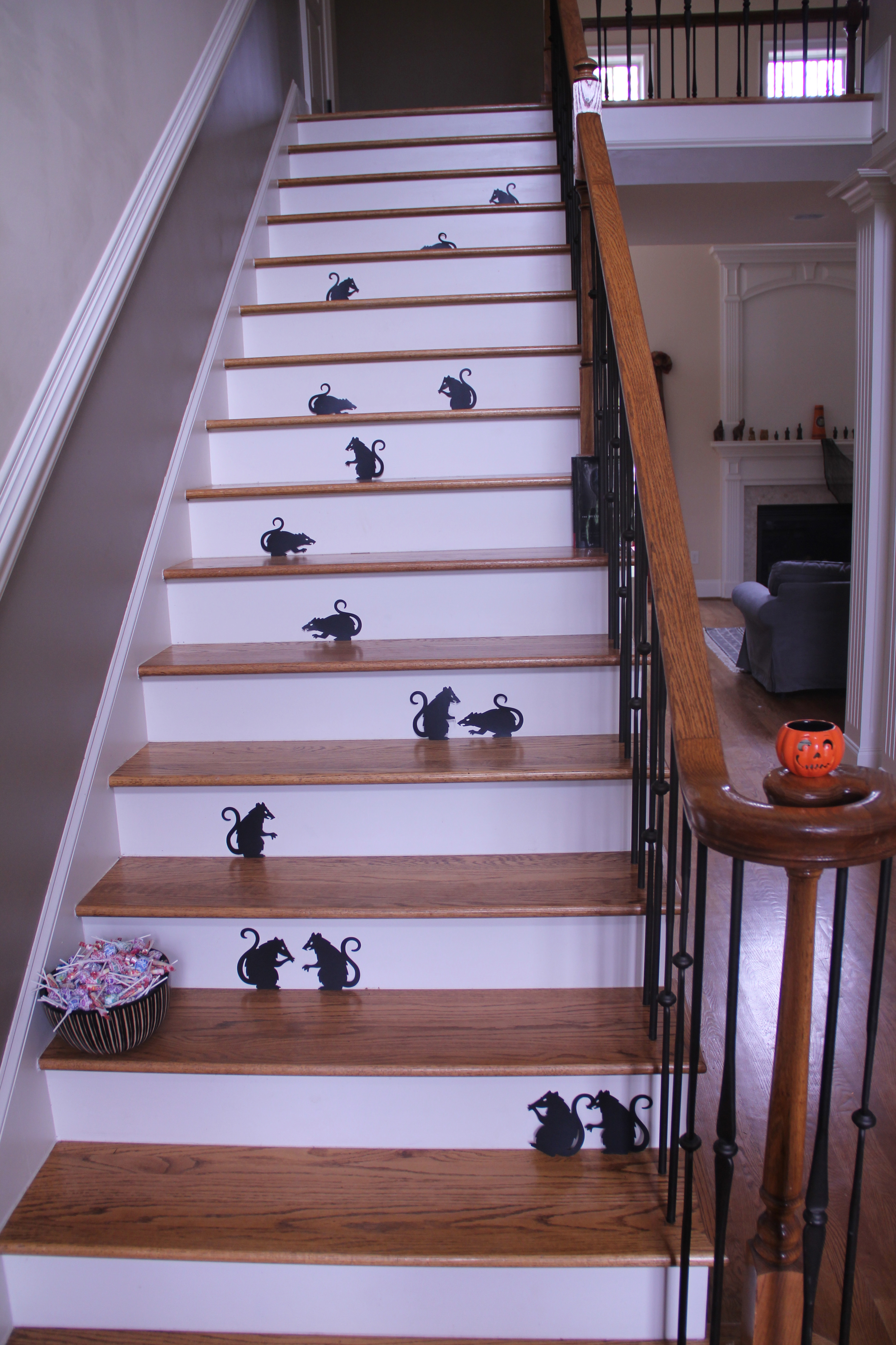 Inomhus hade vi också fixat lite spökstämning, trappan var dekorerad med möss och den söta lilla pumpaljushållaren som Tess och jag hittade på Bath&Body works. Godis i mängder var inhandlat och stod och väntade i skålen: