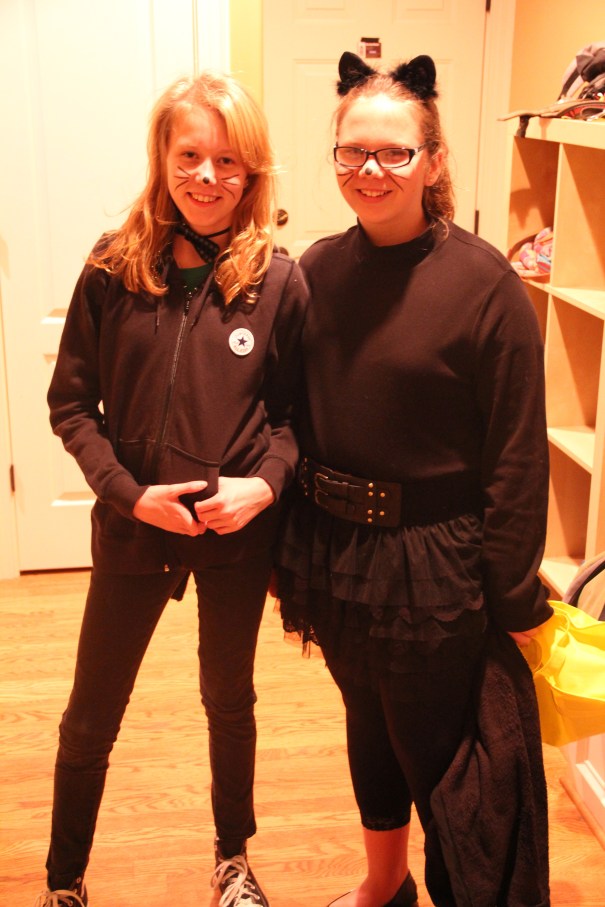 Tess och hennes kompis hade klätt ut sig till katter, och var så här söta när de gick iväg: