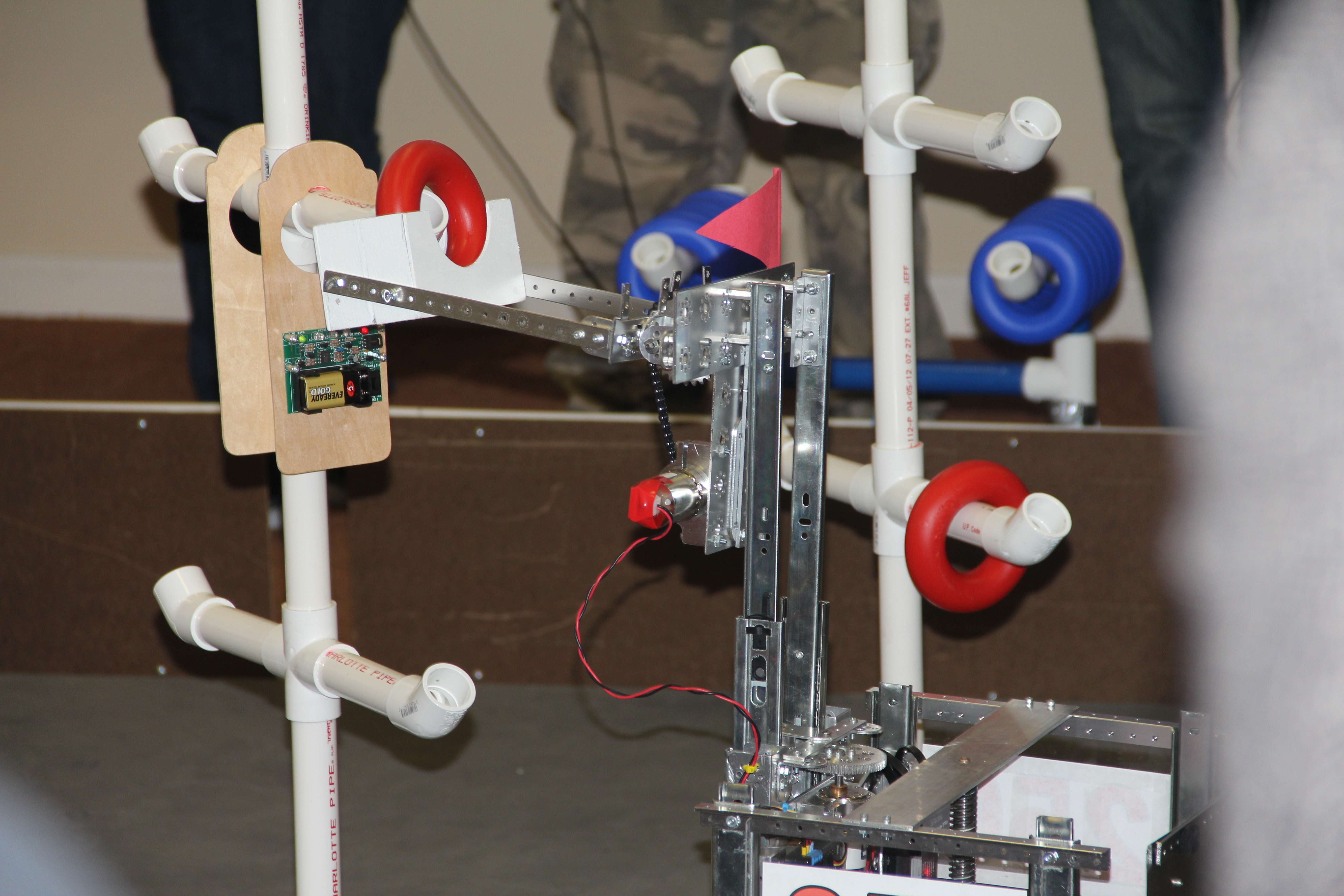 Lyckas roboten hänga ringen på just den pinnen inom 30 sekunder får man 50 poäng. Detta klarade Max team galant, och vann den matchen.
