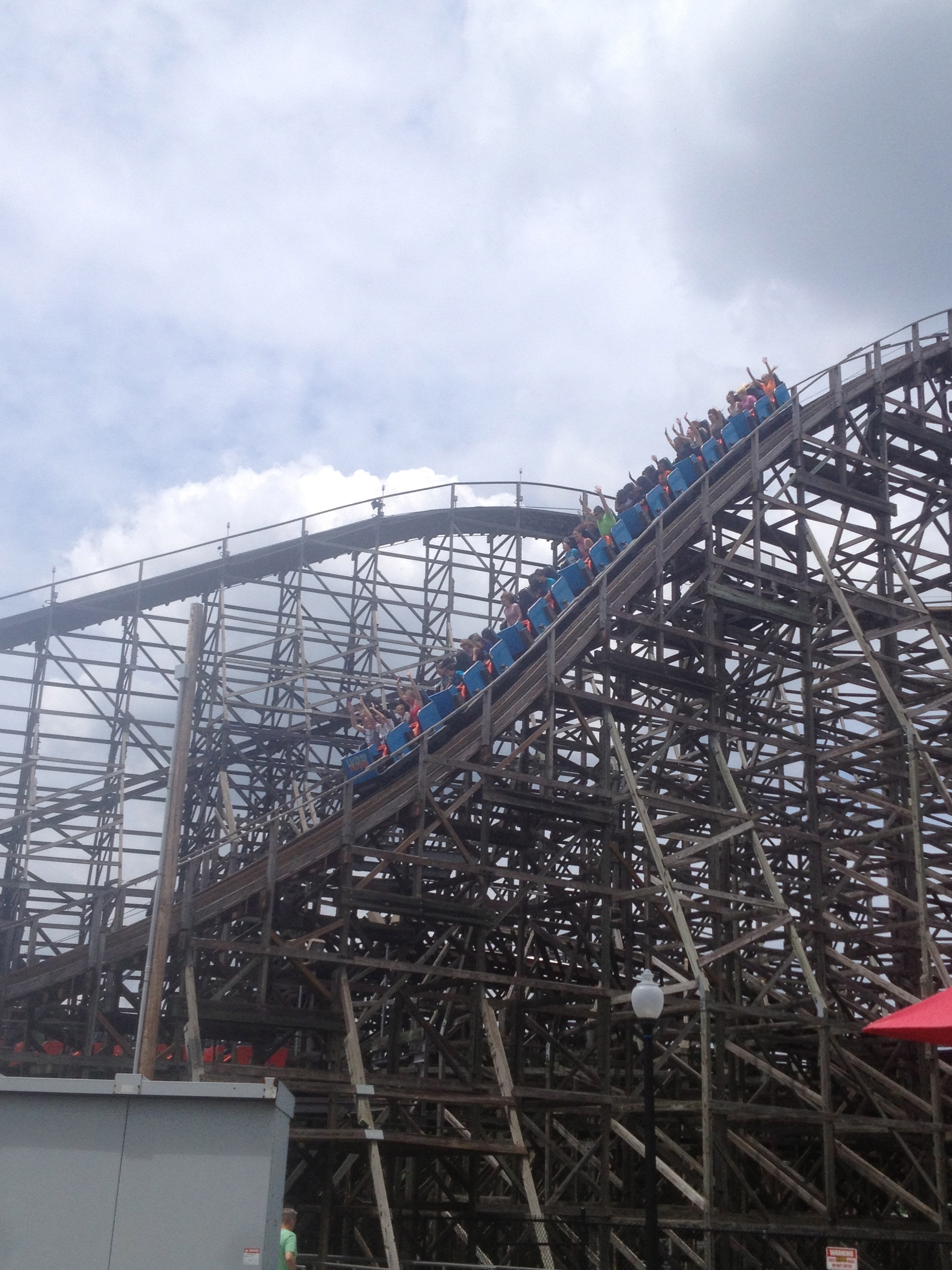 Jag hittade faktiskt en som även jag vågade åka, efter en viss tvekan. En liten berg- och dalbana lite i stil med nyckelpigorna på Liseberg (som heter något annat nu som jag glömt). Lite längre och med liiite högre backar, men helt klart lagom för mig även om de andra tyckte den var jättetöntig! 🙂