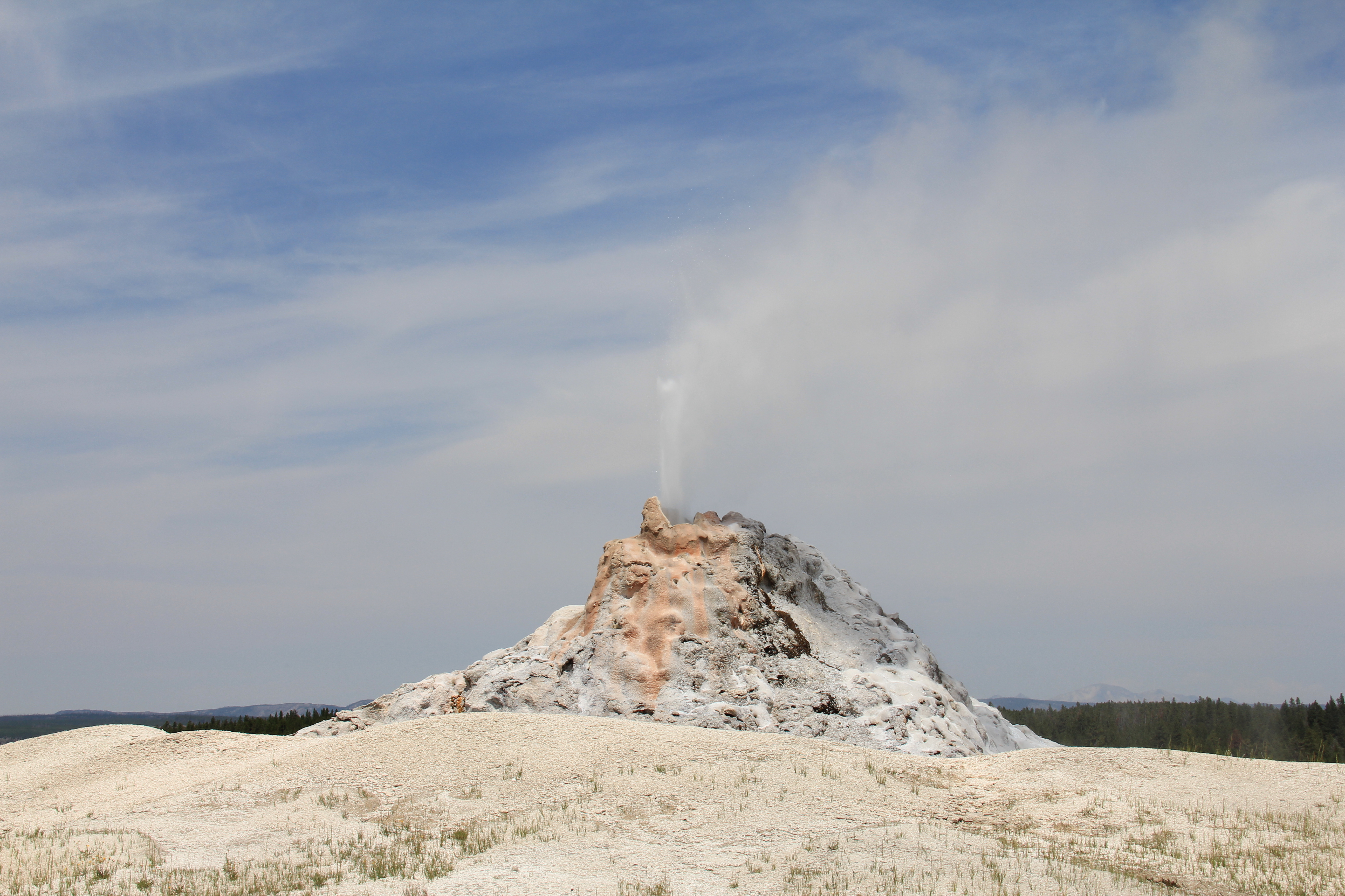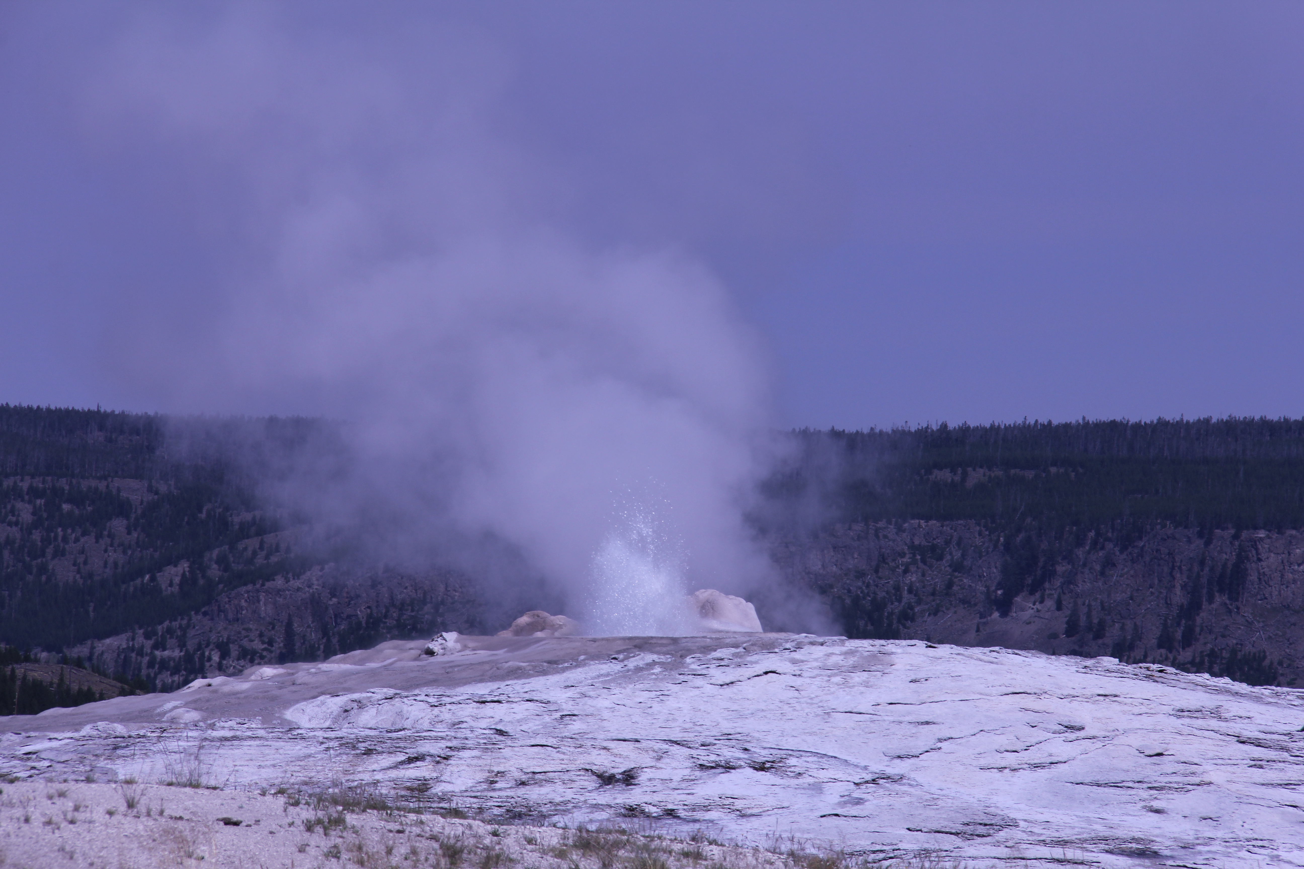 Första anhalten var alltså Old Faithful. Det är en enorm konisk gejser som kan spruta uppemot 60 meter upp i luften. Max såg mycket fram emot att komma dit eftersom den förekommer i ett av de datorspel han spelar, och hade en hel del fakta om den som han lärt sig via spelet. Känns alltid bra att höra att man faktiskt kan lära sig en hel del allmänbildning av datorspel också! 🙂