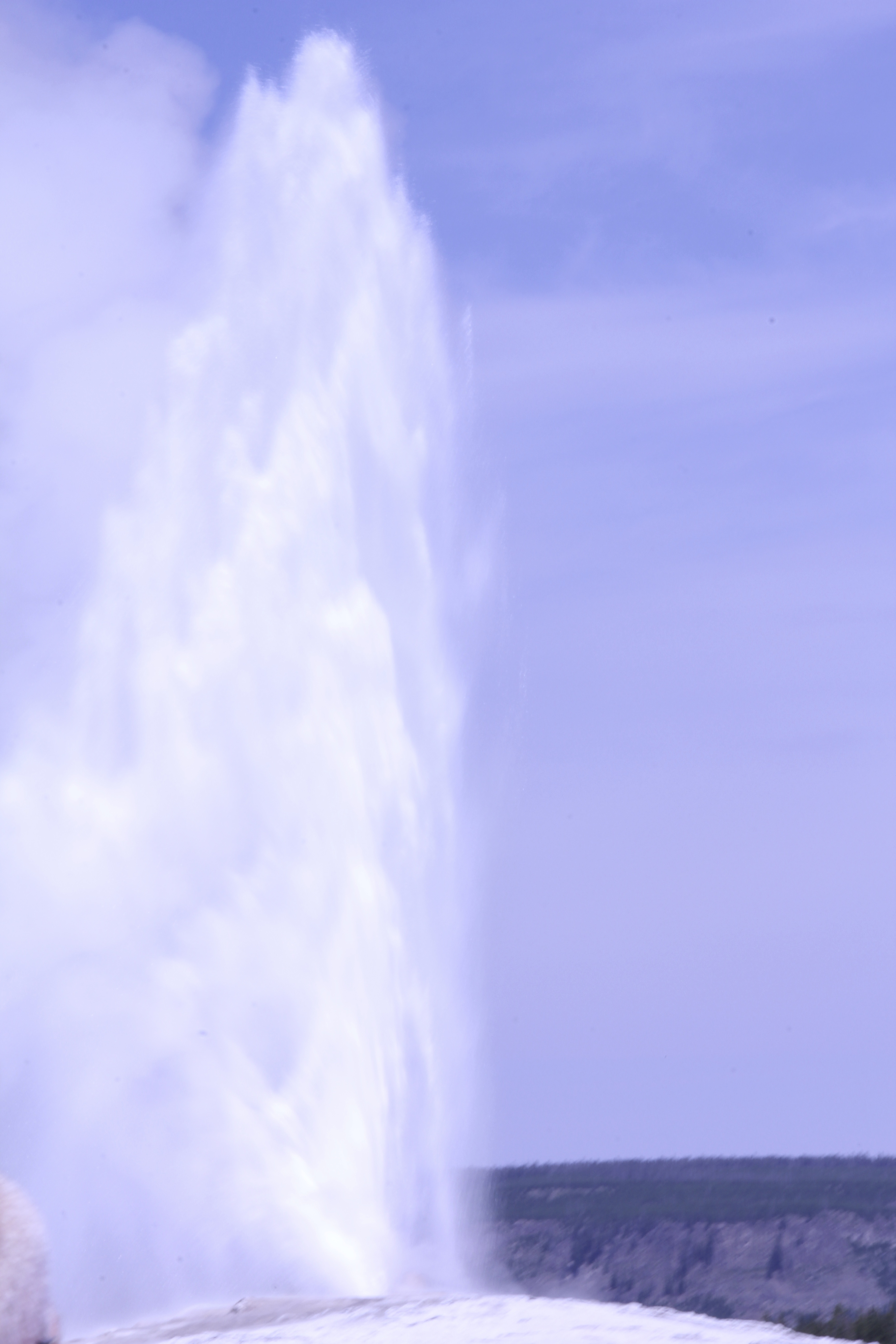 Old Faithful är en pålitlig gejser (vi trodde att det var därför den fått sitt namn men det visade sig att det inte var så), den får nämligen utbrott ungefär var 90:e minut, det kan komma redan efter 60 minuter också men större än så är inte variationerna. Turistvänligt och bra! 🙂 Det finns en mätare strax intill där man kan se ungefär när nästa utbrott är att vänta, en annan – minst lika säker – mätare är att titta på folkmängden som står runt källan. Ju mer det närmar sig desto trängre blir det, medans det är helt folktomt strax efter! 🙂