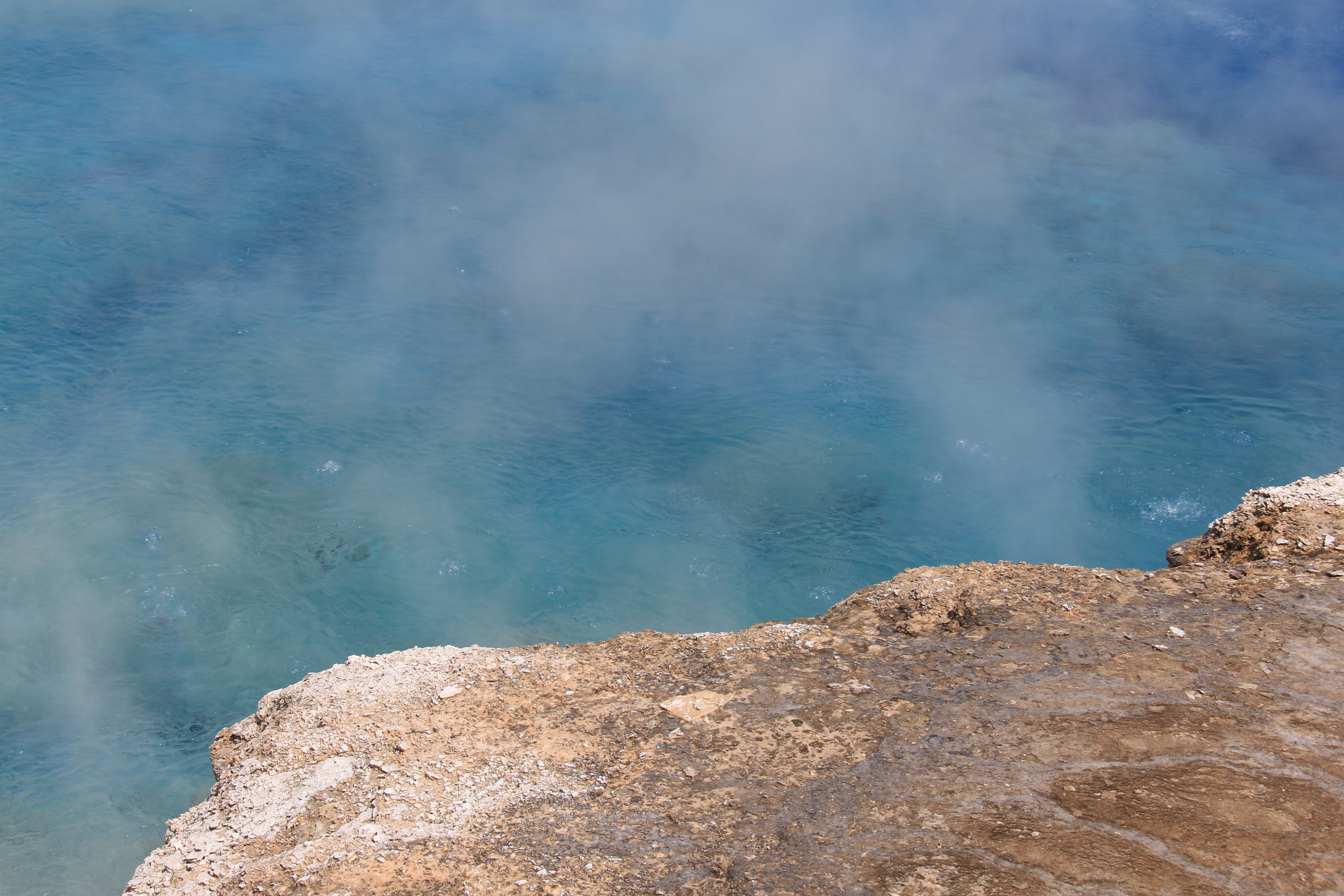 Området består av tre källor, och man går på en ramp som är byggd runt dem. Den första har alldeles blått vatten som på sina ställen är tillräckligt varmt för att det ska sjuda: