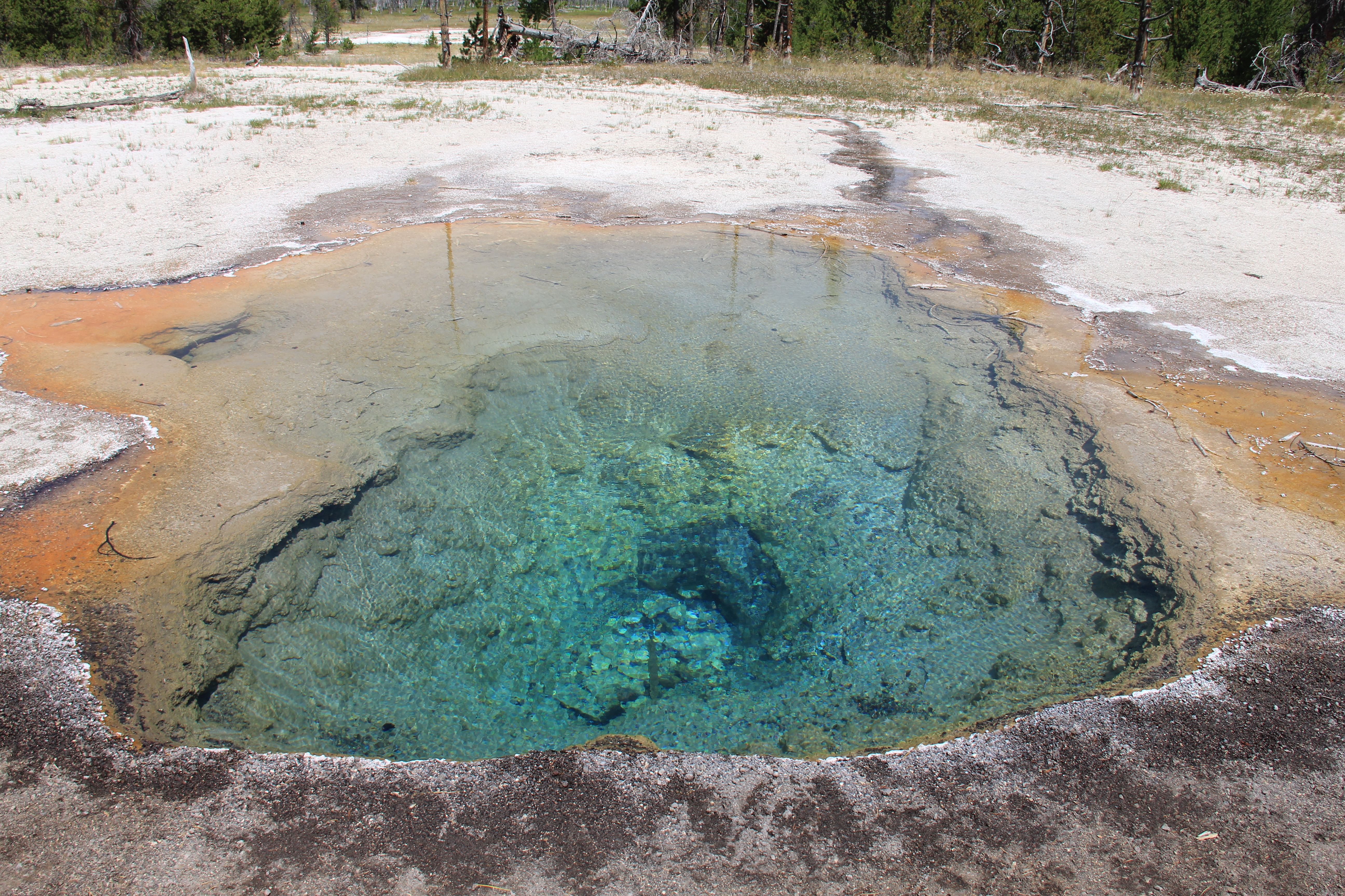 Efter dessa källor, ett par minuters bilväg bort bara, finns ett ställe som heter Firehole. Där finns det vattenfall att titta på, men tyvärr var det avstängt när vi kom dit så vi såg dem aldrig. Men det finns en liten källa där, där man bättre kan se den vackra blå färgen: