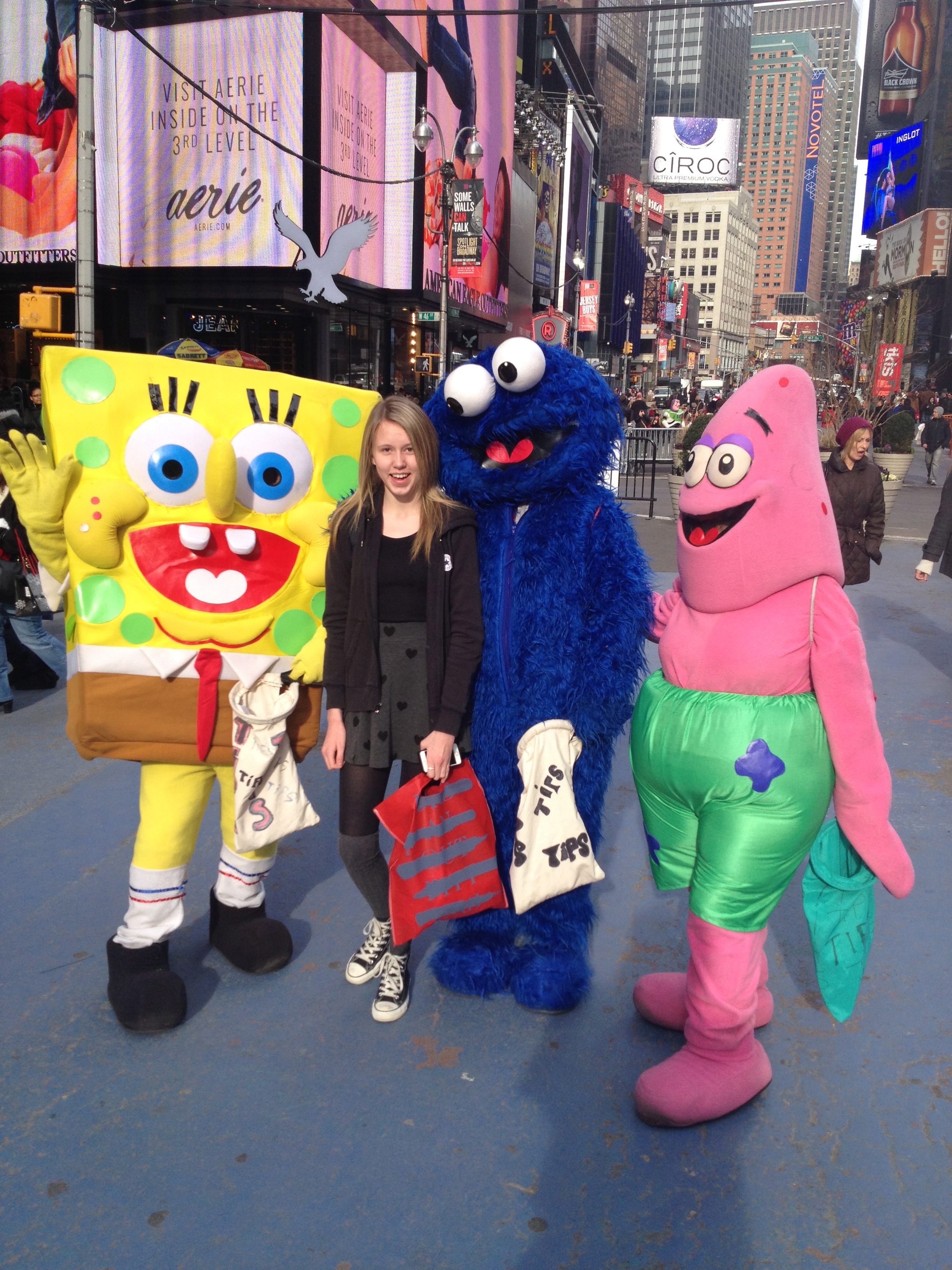 På Times Square träffade vi på Tess favoritfigur, Kakmonstret!