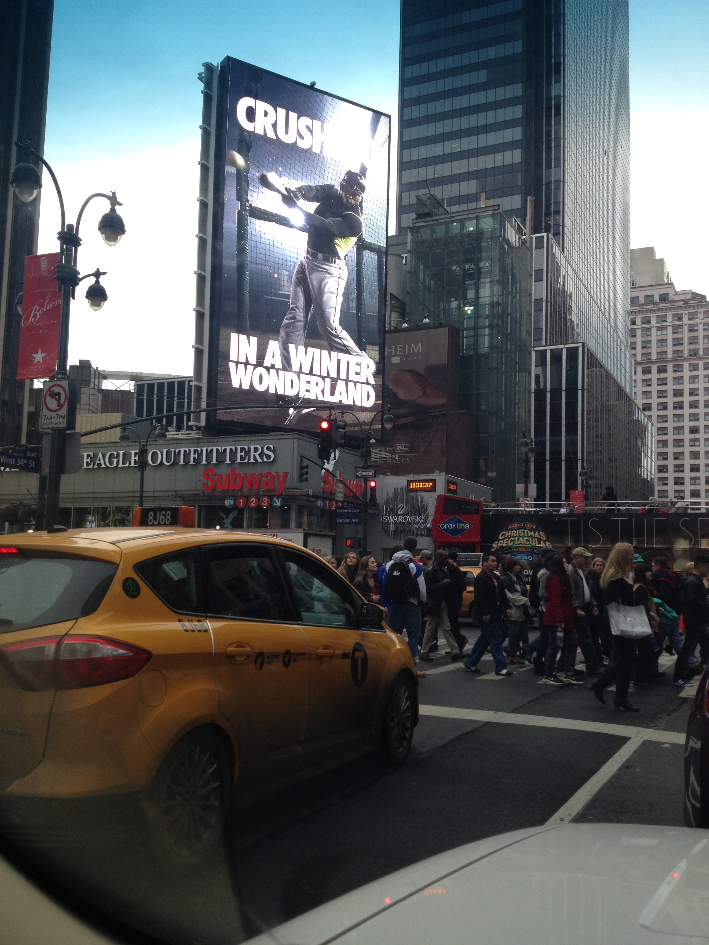 Direkt på fredag morgon tog vi således tunnelbanan in till 42:a gatan och gick först till en affär som heter Urban Outfitters. Plötsligt kände jag mig rätt gammal, jag hade aldrig hört talas om den förut men Tess blev helt till sig när hon fick syn på den och visste precis vad det var. 🙂 Där hittade Tess en jättefin kjol och en tröja till. Sedan gick vi upp till Times Square, och passerade H&M på vägen. Känns fortfarande lite speciellt att se en svensk affärskedja här i USA. 🙂