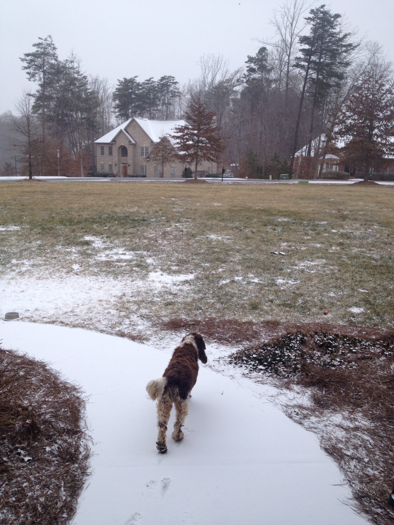 Och snö blev det faktiskt. Strax efter 1 började det så smått, och nu när klockan är 4 snöar det fortfarande. På lokal-tv’n rapporterar man löpande om väderläget, och för nån timme sen hade man presskonferens. Guvernören deklarerade att det råder ”state of emergency” (katastroftillstånd), secretary of transportation (ansvarig för transportfrågor), emergency management director (chefen för katastrofhanteringen) samt (min favorit) Adjutant General Gregory Lusk från nationalgardet (iklädd stiliga kamoflagekläder och allt)  rapporterade om läget. Man varnade alla för att ge sig ut på vägarna om man inte måste.