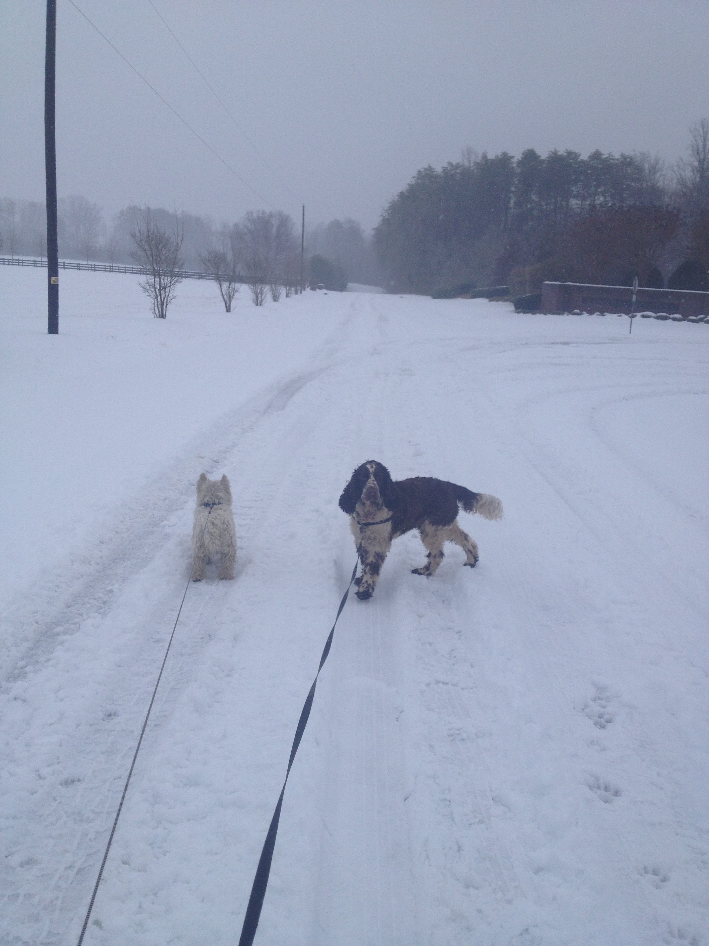 3. Vilka härliga bilder! Snö är så vackert! Hundarna ser glada ut. Om än lite farligt hos er förstås … följer ett konto på Twitter och har sett flera bilder på lååånga bilköer i Charlotte och till och med Greensboro!