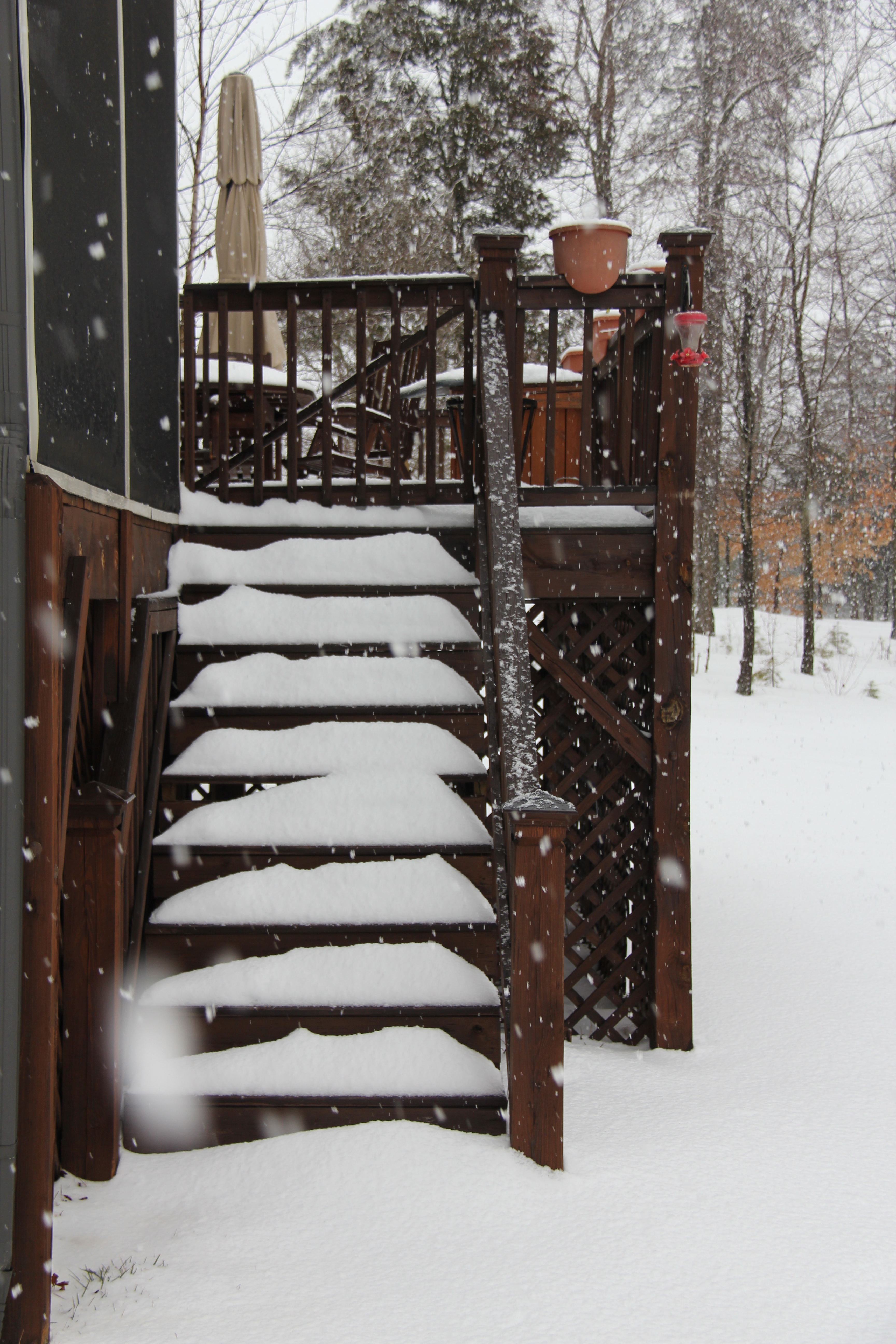 En sak upptäckte han som saknas här i NC som vi inte ens tänkt på förut. I Sverige har vi ju snökäppar längs med alla vägar, de där orange pinnarna med reflexer på som märker ut hur vägen går när det är mycket snö och oplogat. Det finns inte här eftersom de ju i princip aldrig behövs, och de gångerna han nu var ensam på vägen och ingen hade kört upp ett spår före honom var det nästan omöjligt att se hur vägen gick. Läskigt, minst sagt!