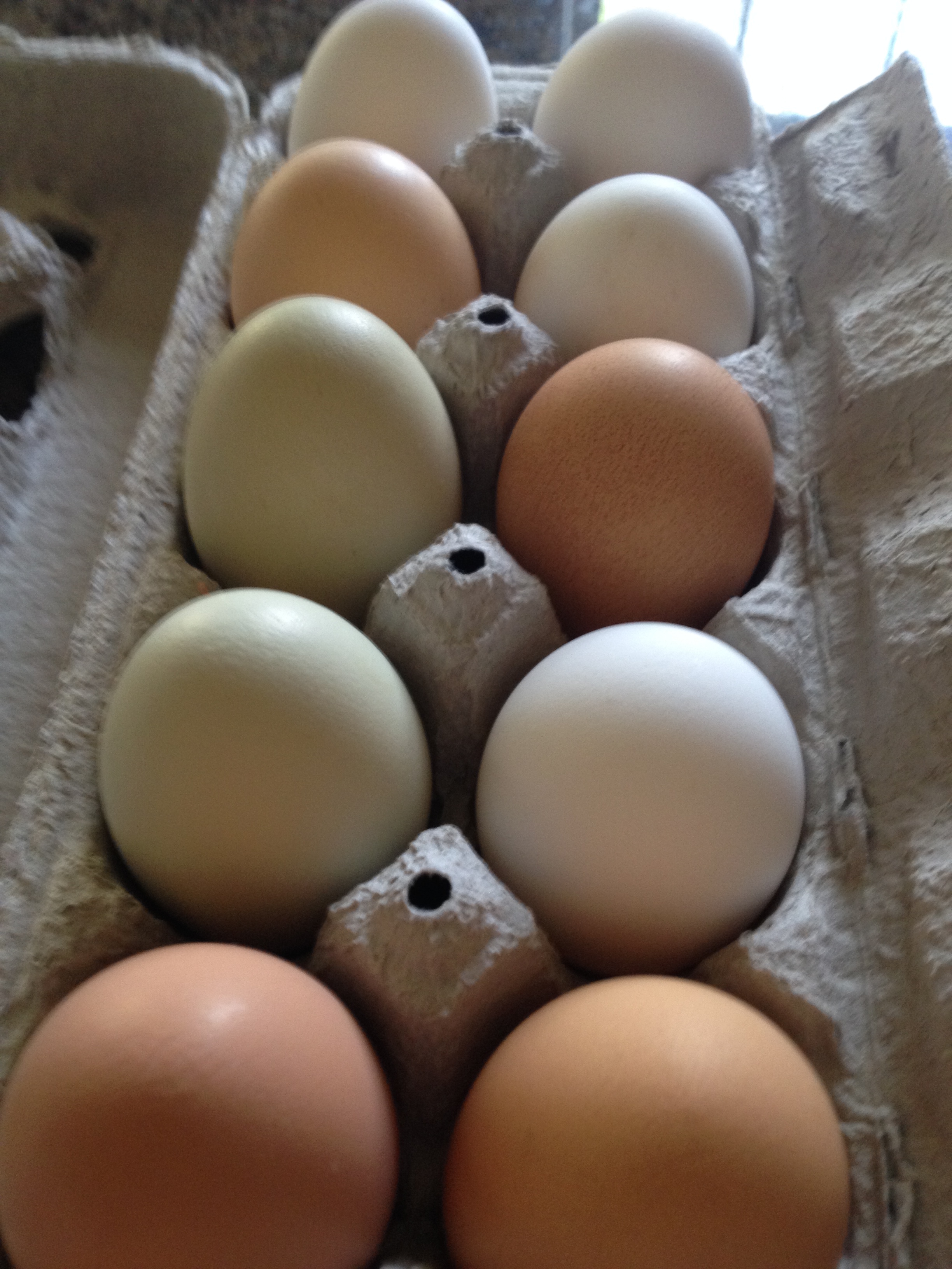 Amy och Preston har hönor, och vi fick pinfärska ägg direkt från hönsgården, mums! Notera de två gröna äggen 🙂