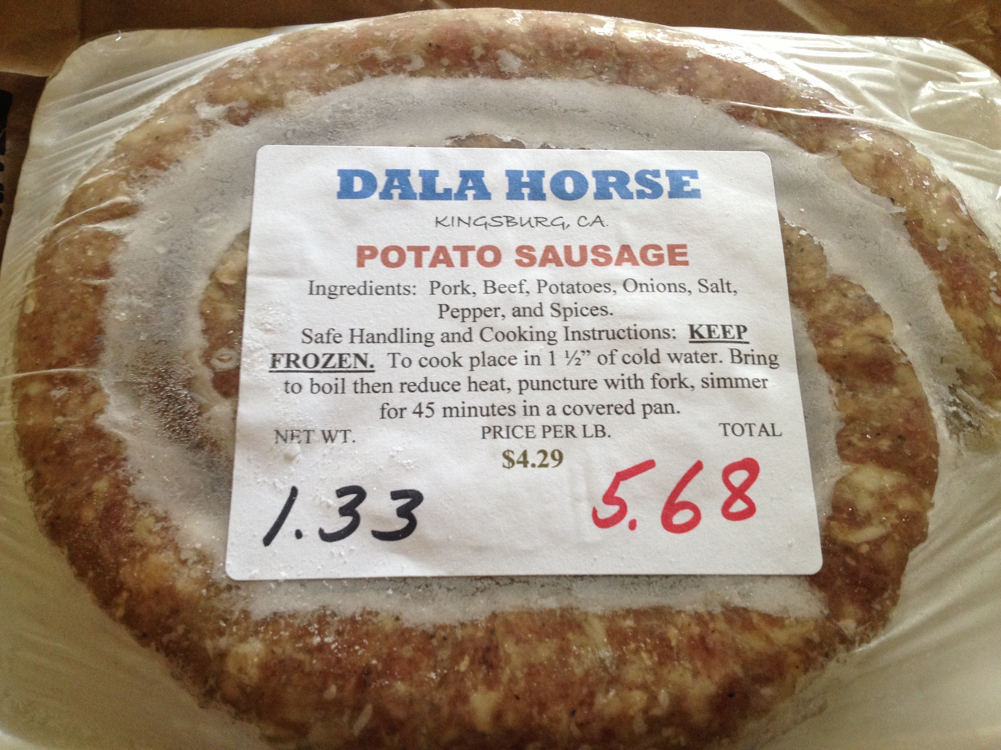 Björn trodde att det var vad vi skulle kalla Värmlandskorv och som hans mamma brukade göra. Gunvor känner du igen om det är det? Enligt innehållsförteckningen är ingredienserna fläskkött, biff, potatis, lök, salt, peppar och övriga kryddor. Vi har inte smakat på den än men jag ser fram emot det. Kanske man kan ha den till ärtsoppa, vilken fest det skulle bli!