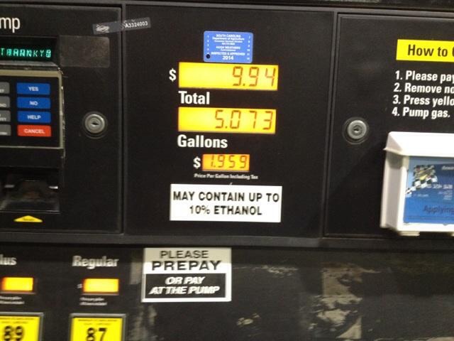 En liten kuriosa: bensinpriset är rekordlågt här nu. Lägsta pris hittade vi i South Carolina, 1,95 dollar per gallon!