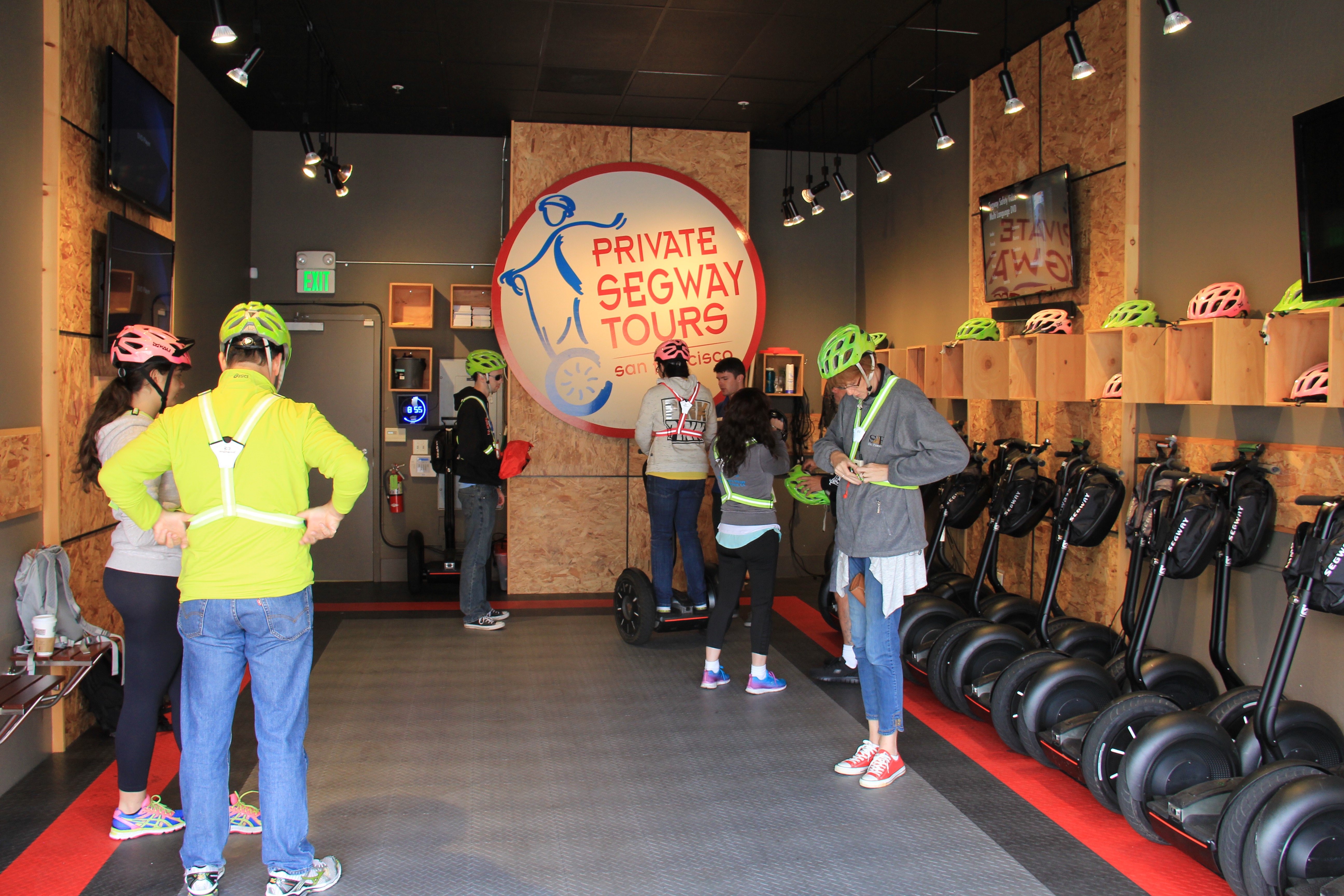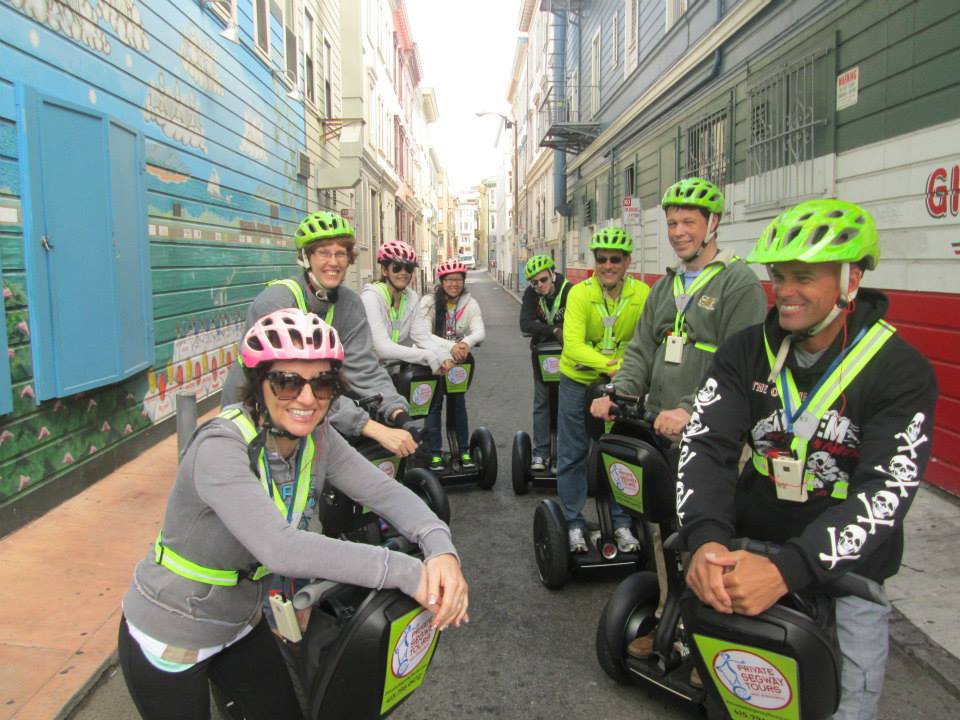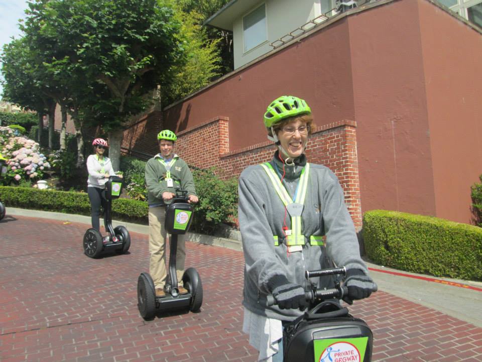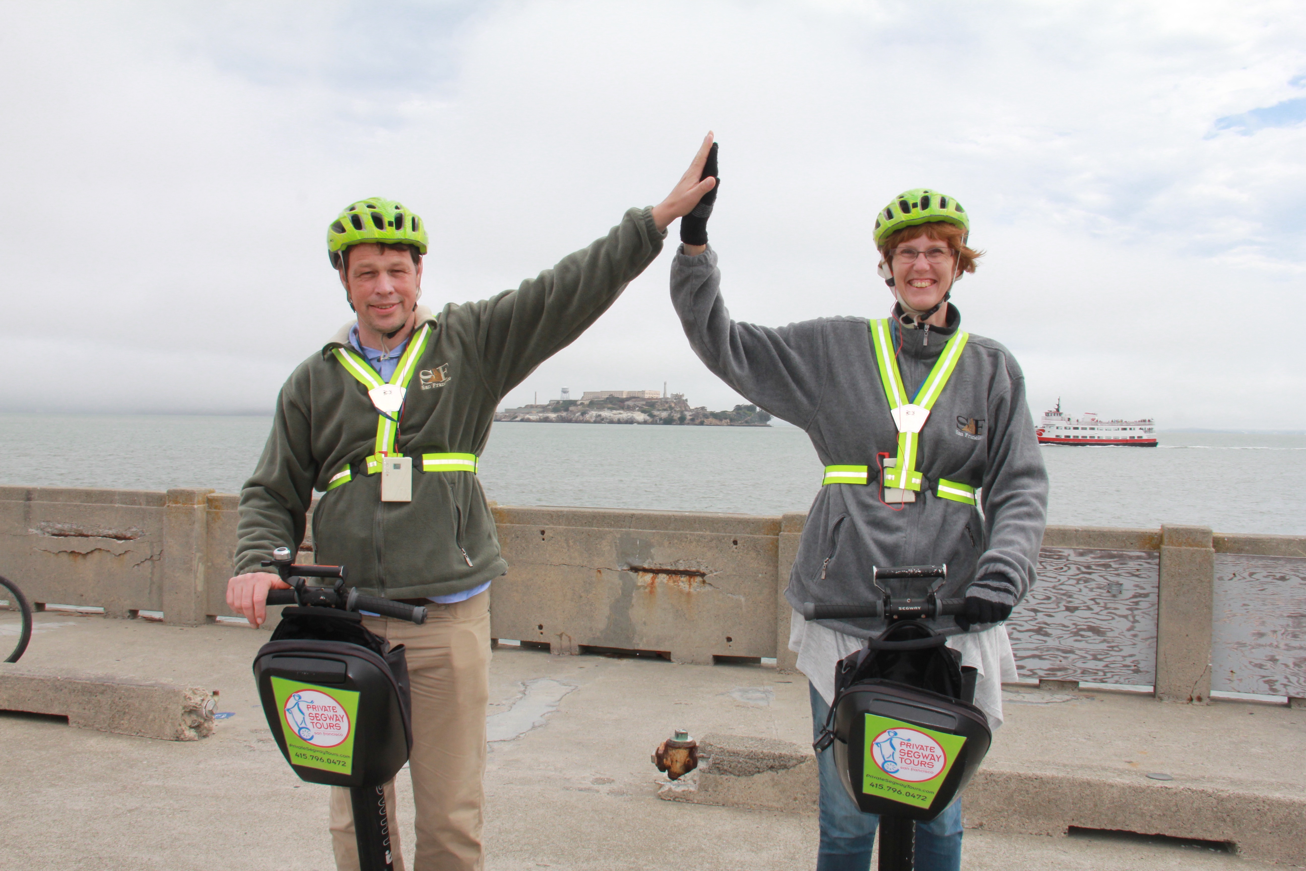 Dag två i San Fransisco var det dags för det vi sett fram emot mest – vi skulle på en rundtur med segway! Turen utgick från Fisherman’s Wharf, så vid 8 på morgonen tog vi en cable car ner till hamnen. Jag, som alltid packar ner kläder för alla fyra årstider om vi så bara ska göra en dagstur, har uppenbarligen blivit bortskämd med att det alltid är varmt i North Carolina på sommaren. Följaktligen hade vi bara packat sommarkläder och inte så mycket som en regnjacka ens en gång, utan vi tog för givet att vädret skulle vara bra. Men denna morgon var det knappt 15 grader varmt och blåste nere vid hamnen så vi kände att det nog skulle bli bra kallt att åka runt på en segway. Som tur var hittade vi en souveniraffär som öppnat tidigt så vi hoppade in där och hittade varsin rejäl fleecejacka. Nu var vi bättre rustade!