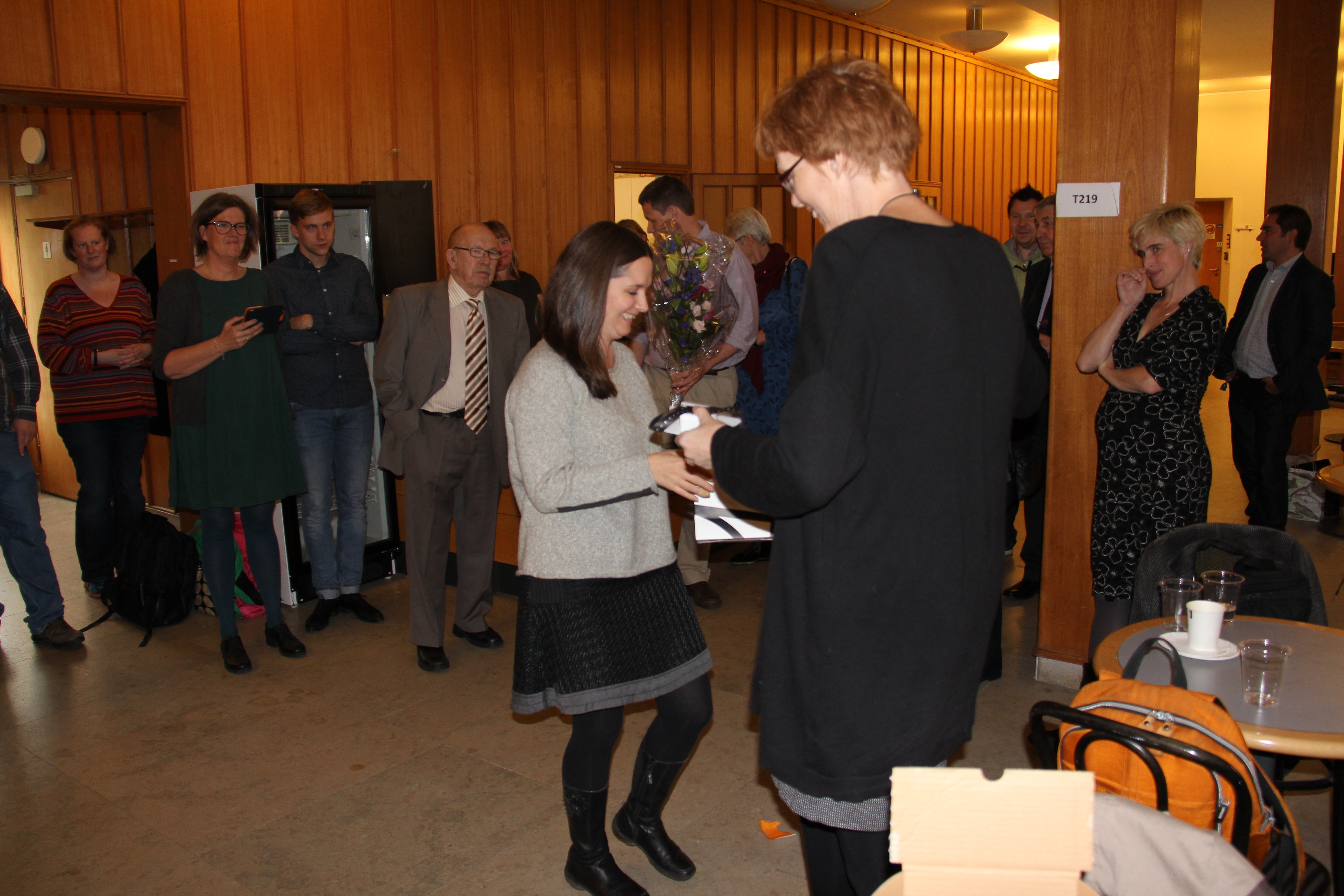 Min handledare höll ett jättefint tal som gjorde mig riktigt rörd. Kändes verkligen som att det var slutet på en epok, på något sätt. Han var min handledare även när jag gjorde mitt exjobb, så han har fått dras med mig i många år nu!