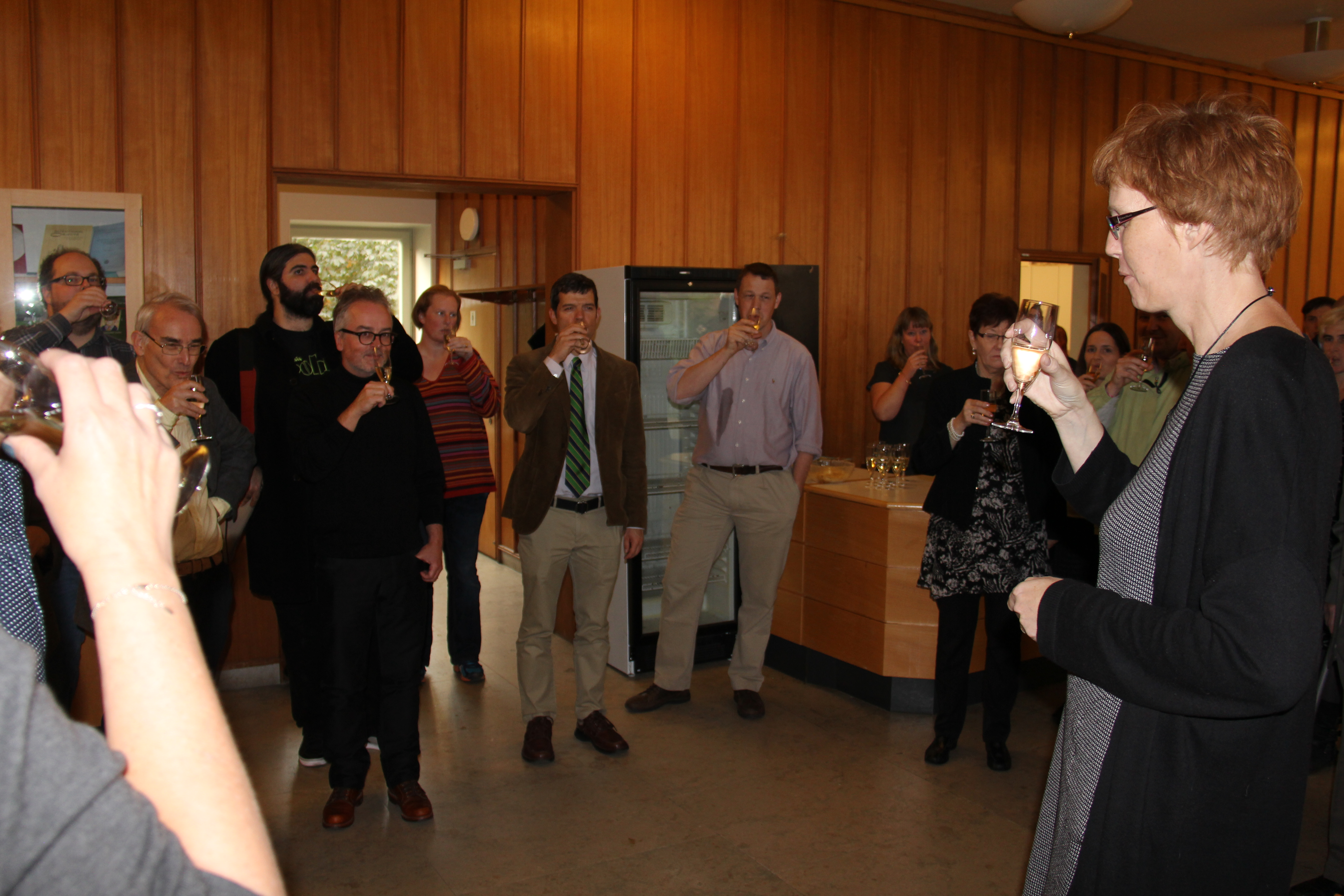 Men då visade det sig att ingen visste var glasen fanns, och klockan tickade på mer och mer. Till slut fick vi hyra glas i lunchrestaurangen, jag var inte särskilt glad över strulet kan jag säga för att leta efter glas var inte riktigt vad jag tänkt mig att jag skulle behöva göra ända tills en halvtimme innan min disputation. Förr har man fått hjälp med sånt så att doktoranden inte behöver tänka på såna detaljer alls, men numera får man själv rodda med förfriskningarna. Nåja, det ordnade sig ju till slut.