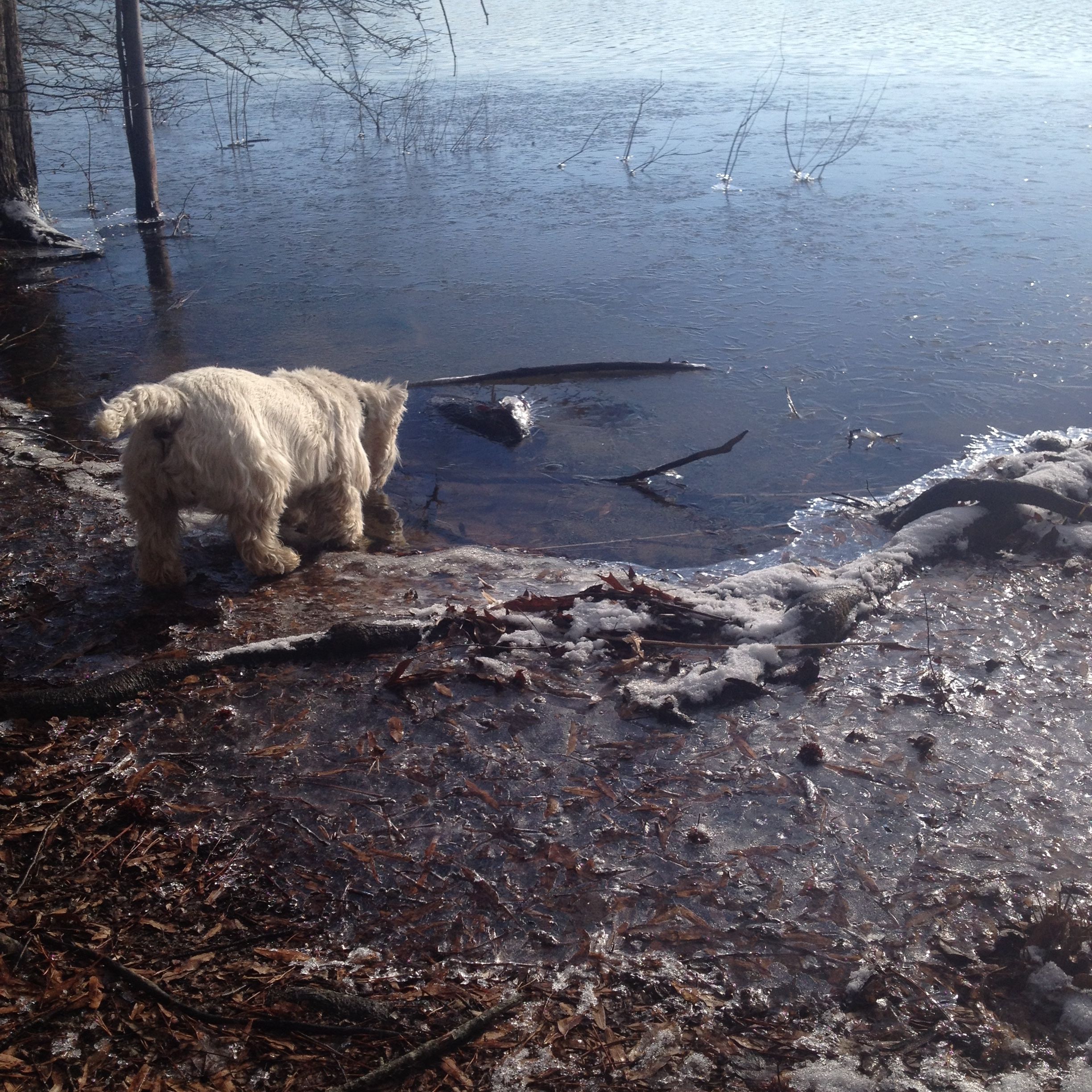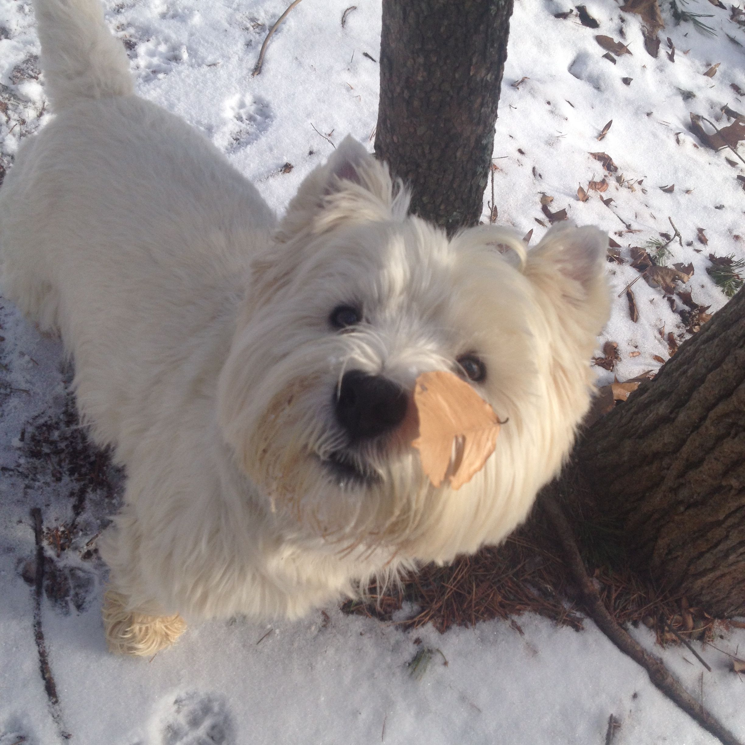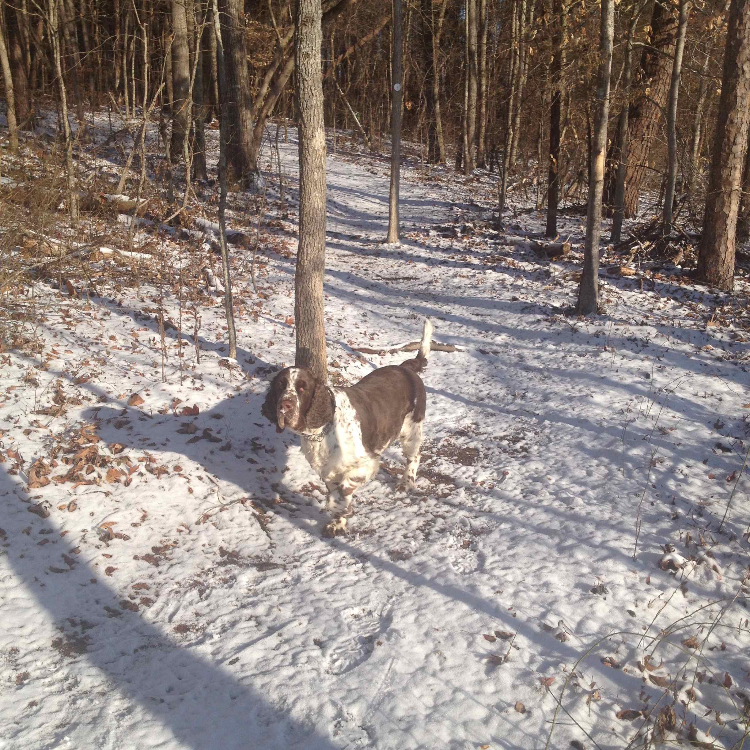 Dan efter var det ju en knapp inch med snö på marken, så skolorna öppnade två timmar senare. Jag fick en fin promenad med hundarna i alla fall, snön var puderlätt, torr och fin, och det var jättevackert ute: