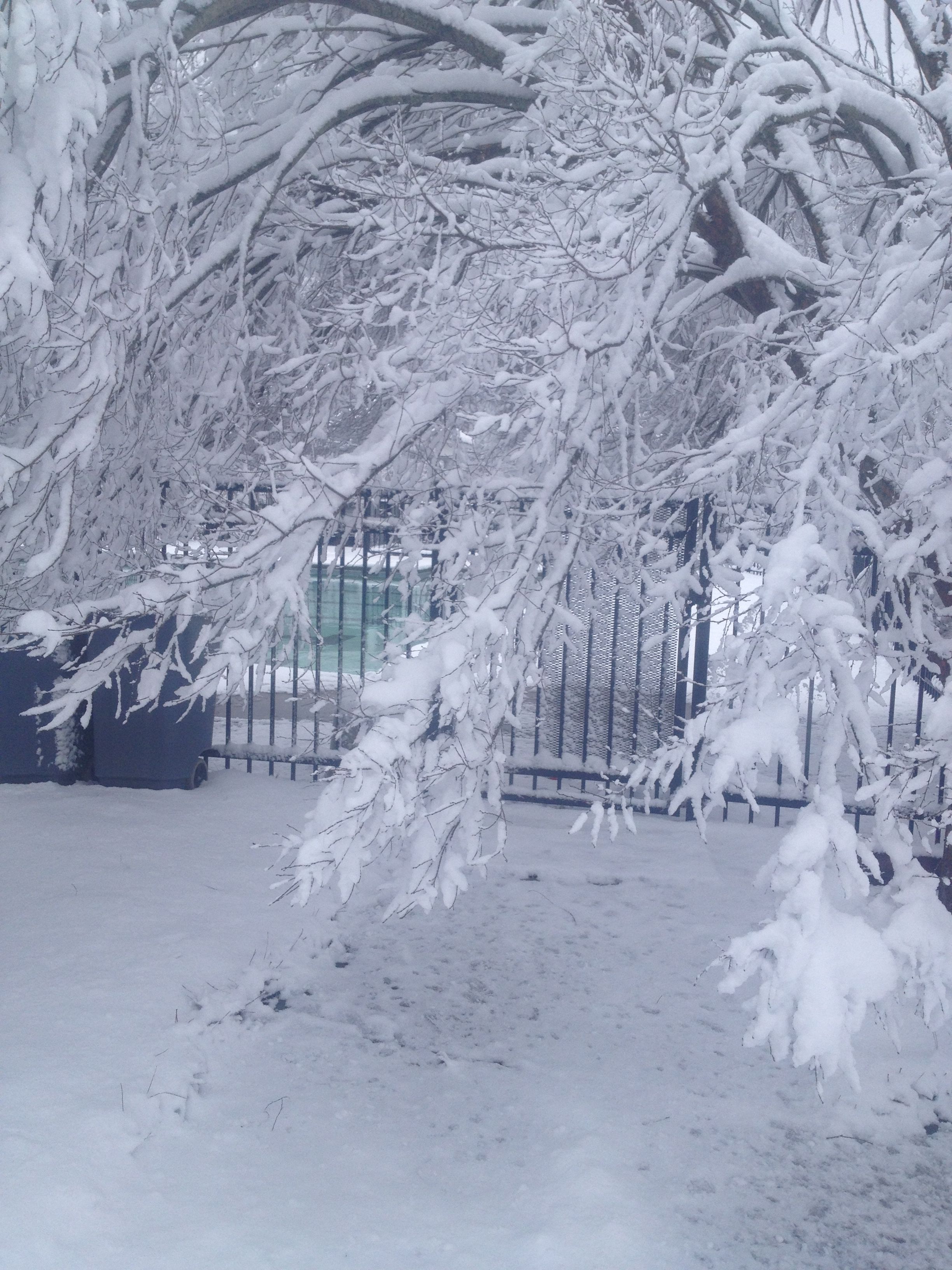 På onsdag kväll började vintern på allvar här – snön vräkte ner och på torsdag morgon låg det 5,5 inches med snö (cirka 14 cm) på marken när vi vaknade! Denna gången var den inte täckt av is heller som det var förra veckan utan den var mjuk och fluffig och det var verkligen jättevackert. Visserligen knäckande när det kommer så sent på vintern men ändå kul att få lite ”riktig” snö. Men skolorna stängde ju resten av veckan, förstås… Många make-up days blir det nu! 😦