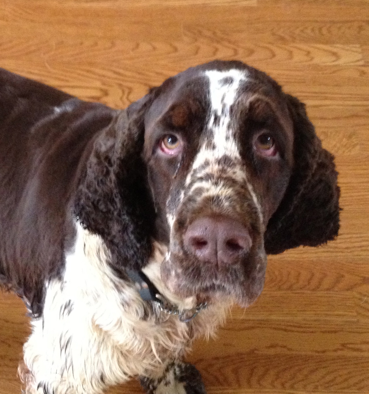 I slutet av kursen gick hon igenom utrustning lite grann. I nybörjarklassen har man koppel på hunden, i de högra klasserna tävlar man utan koppel. Hon nämnde också att hon själv har stackel till in hund (som för övrigt är en sealyham terrier och inte någon jättestor och jättestark sak) men att det inte är tillåtet att använda på AKC’s (USA’s motsvarighet till SKK) tävlingar. Man får inte använda dem inne på tävlingsområdet överhuvudtaget, så därför rekommenderade hon att man vande hunden redan på träning att ha ett vanligt halsband även om man använde stackel för övrigt. Det engelska ordet för stackel är prong collar, och jag kände inte igen det så jag var tvungen att fråga vad det var. Då drog en av de andra deltagarna ut sin hund, en jättevacker weimaraner, ur buren och visade halsbandet som satt på hunden. Då kunde jag inte hålla mig igen utan sa att ”aha, det där är” och sen fyllde alla de andra i ”olagligt i Sverige! Vi vet!”. Det blev lite komiskt faktiskt! Vad som inte är särskilt komiskt är att stackel är så oerhört vanligt här. Till och med folk som är kursledare och som tävlar högt upp i klasserna och har en liten, liten terrier tycker alltså att det är nödvändigt att använda det. Sorgligt, minst sagt. 😦