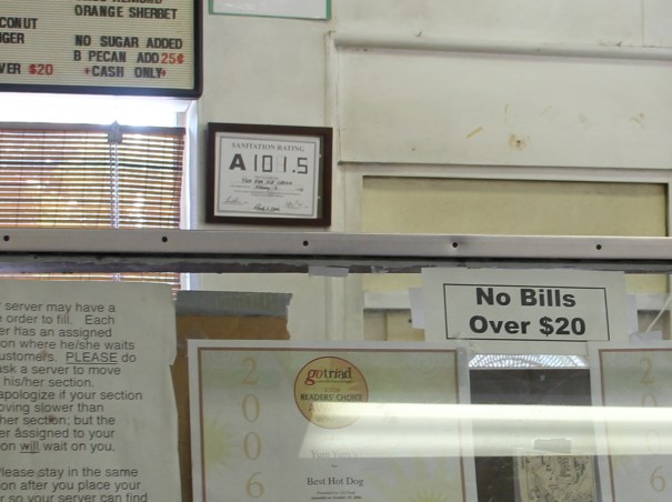 Det finns flera stycken sådana restauranger i Greensboro men vi valde den som Tess var på, som heter Sapporo. Man kan inte beställa bord i förväg, och det kan vara runt en timmes väntetid på helgerna. Vi kom dock dit tidigt, redan vid halv 6, så vi hade tur och kunde gå och sätta oss vid ett bord direkt. En kvart senare var alla bord fulla så vi hade tur!