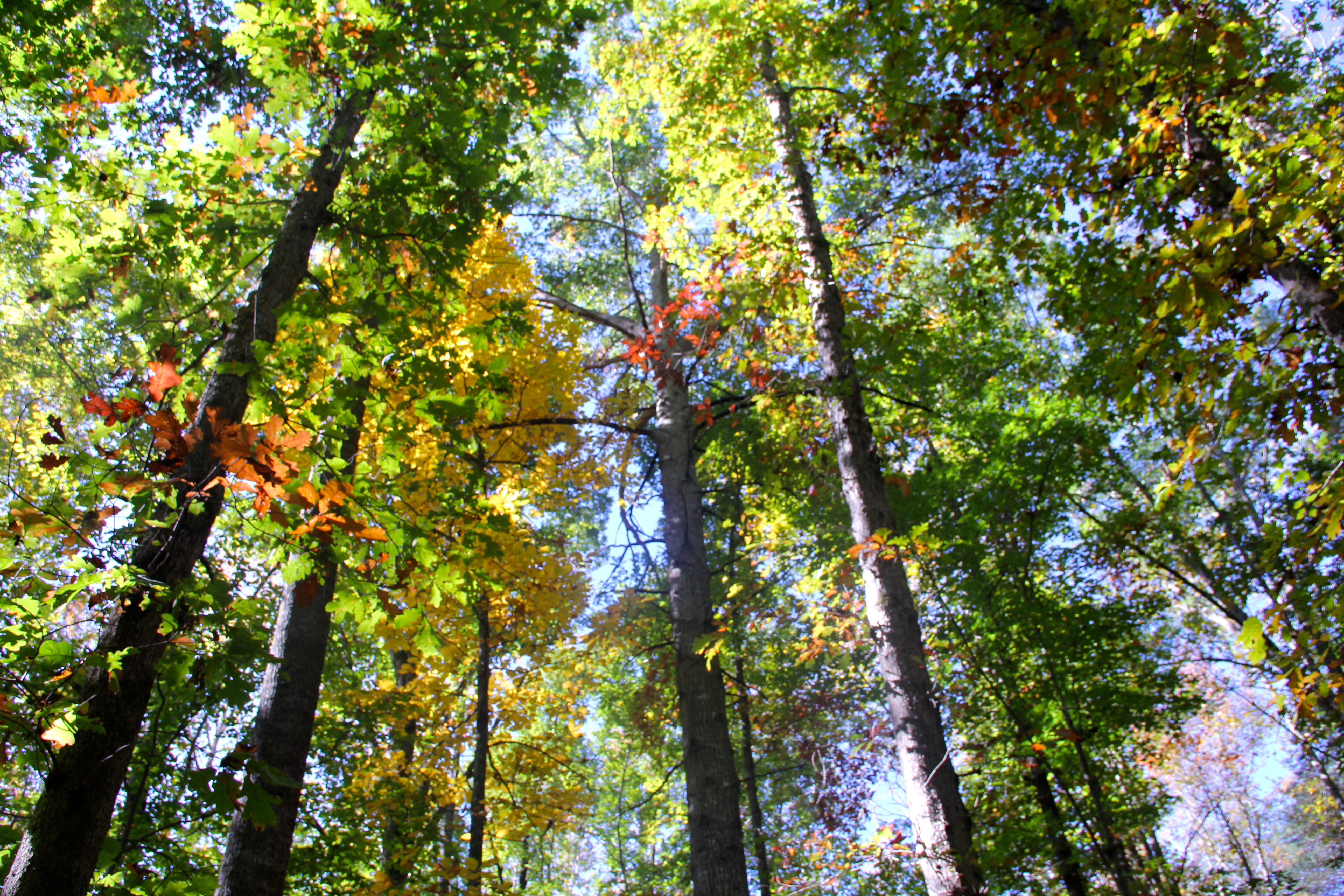 Jag trodde först att de inte städat undan ordentligt efter att ha röjt i skogen för att göra vandringsleden, men det är alltså bävrar som fällt träden! Coolt! 🙂