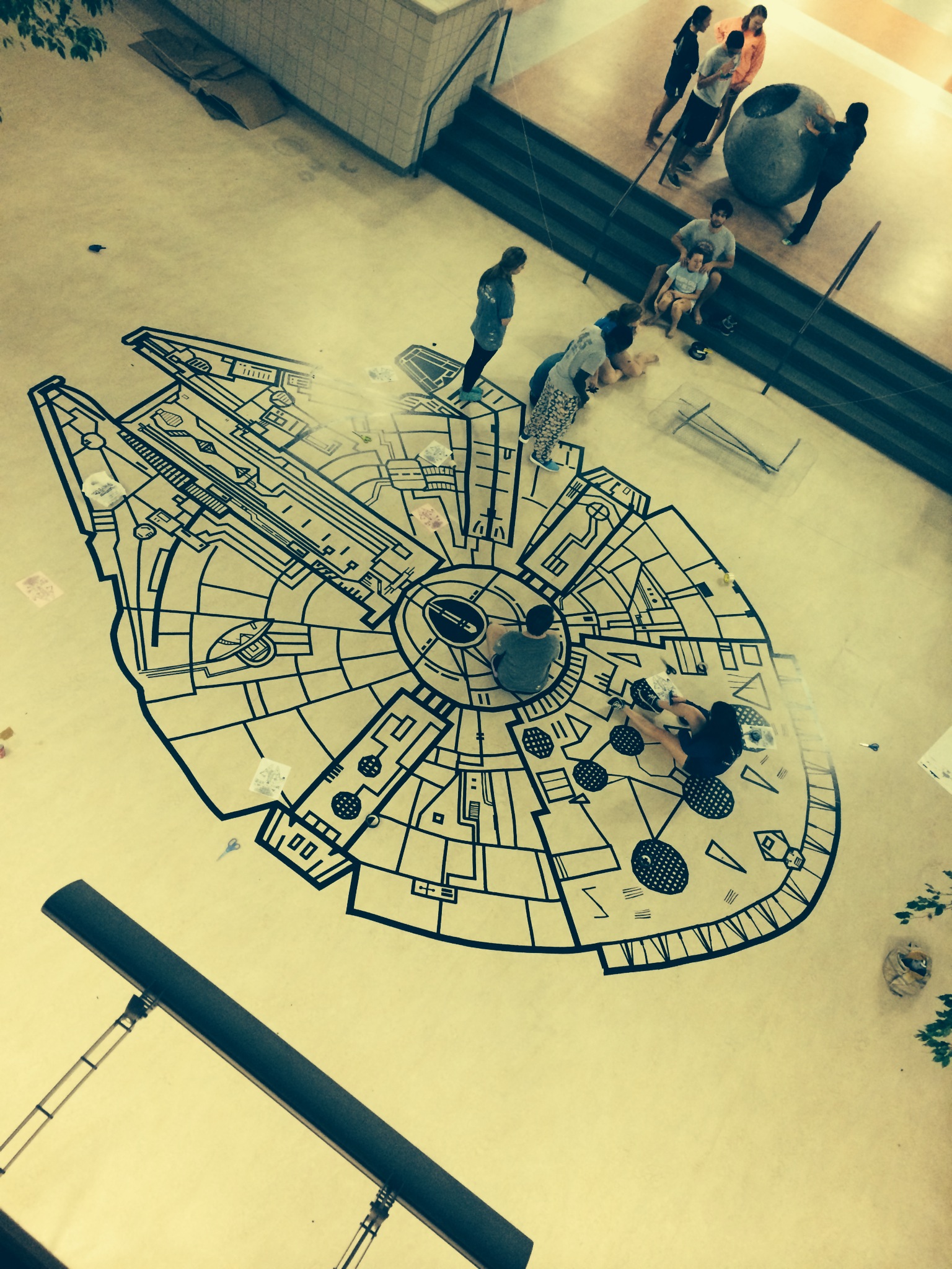 De har olika teman för Homecoming week varje år, i år var det Star Wars så alla dekorationer var på det temat. I entréhallen tejpade de upp ett jättestort rymdskepp: