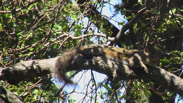Det är ju inte så att det knatar omkring hundägare dagarna i ända i området. Det bor visserligen väldigt många hundar här, men antalet hundar korrelerar inte så bra med antalet promenader som görs, i alla fall inte med svenska mått mätt. Så man kan tycka att ekorrarna skulle ha gott om tid att springa ner och hämta det som hämtas ska när det är tomt på gatan, istället för att sitta och vänta tills vi kommer tillräckligt nära. Skyddsjakt, någon?