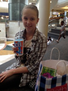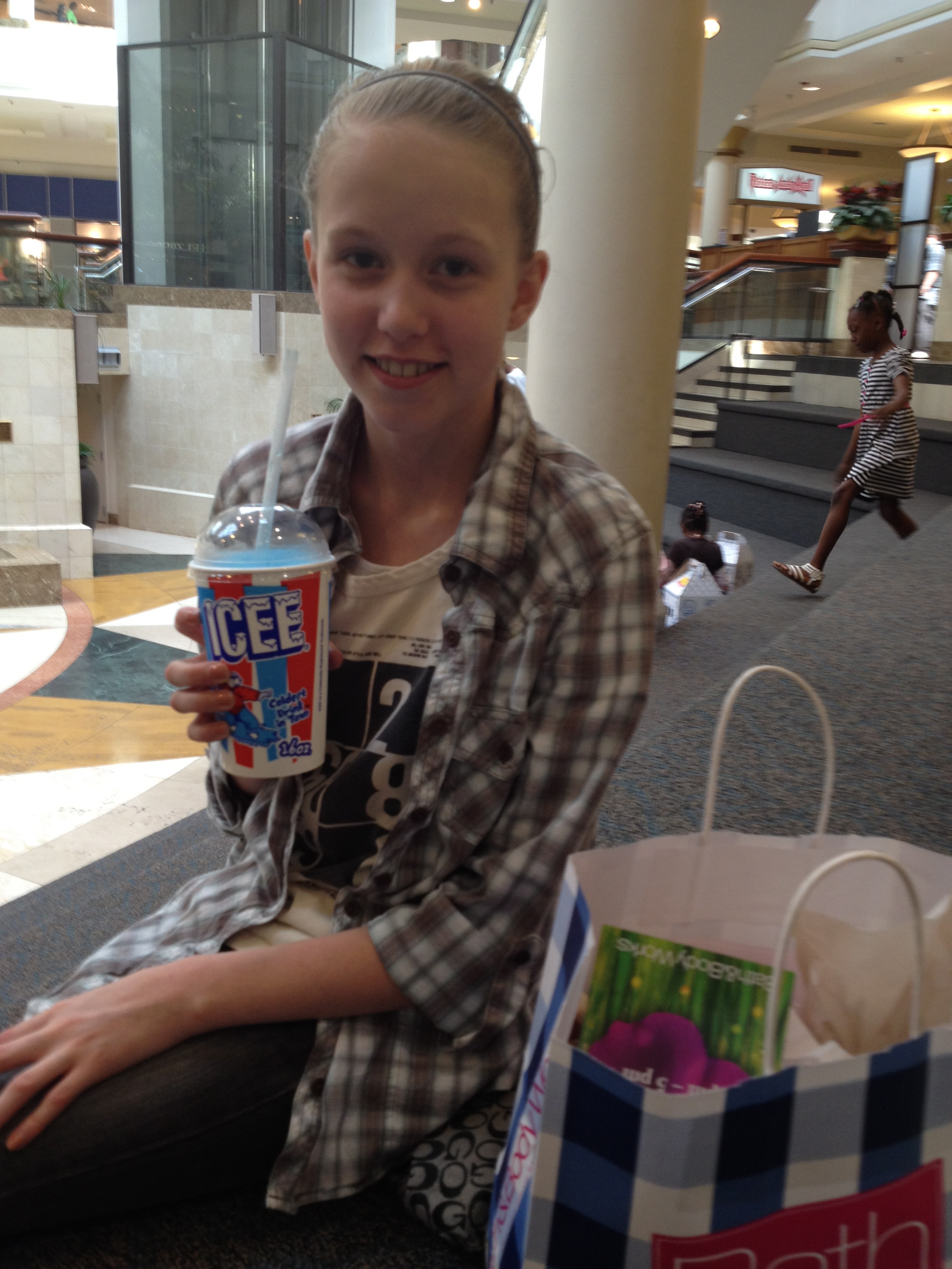 15.30 Paus med slush ice för Tess och frappuccino för mig. Det var riktigt varmt ute (25-26 grader nånting) för första gången på flera dagar.