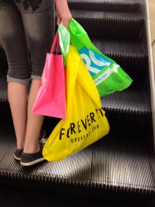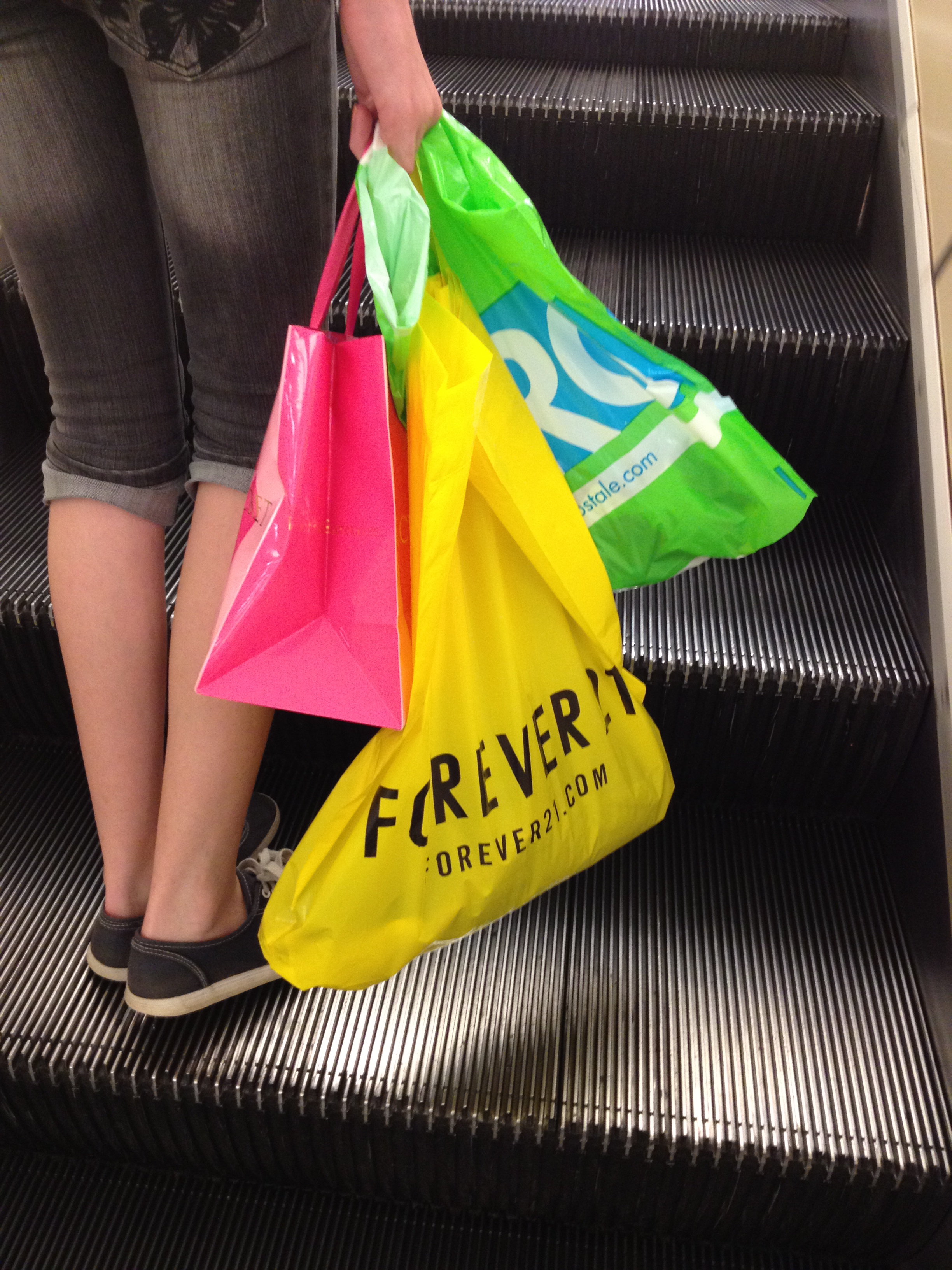 16.30 Färdigshoppade och på väg ut från köpcentret.