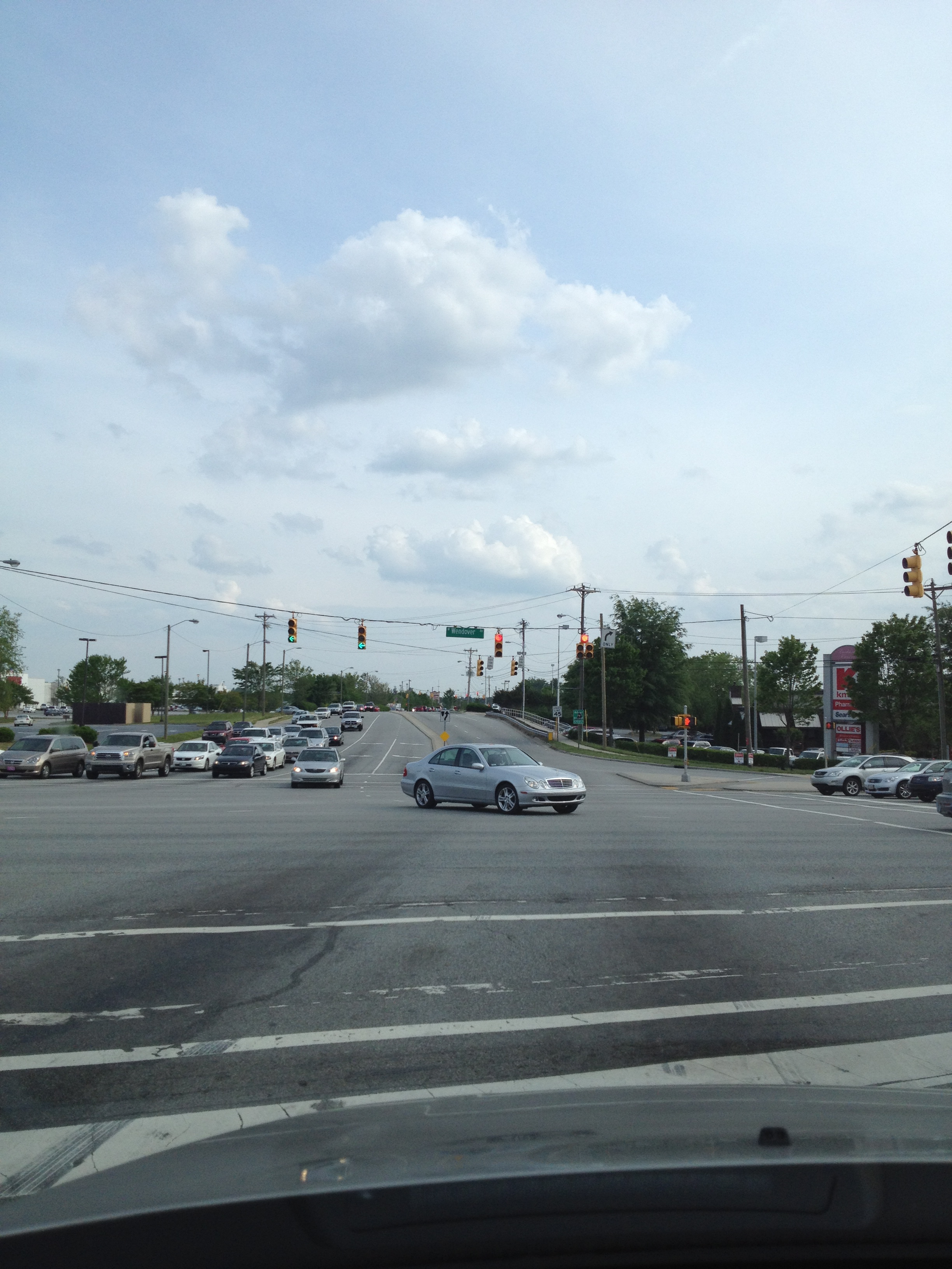 17.30 I väntan på grönt ljus efter att ha köpt lördagsgodis på Target.