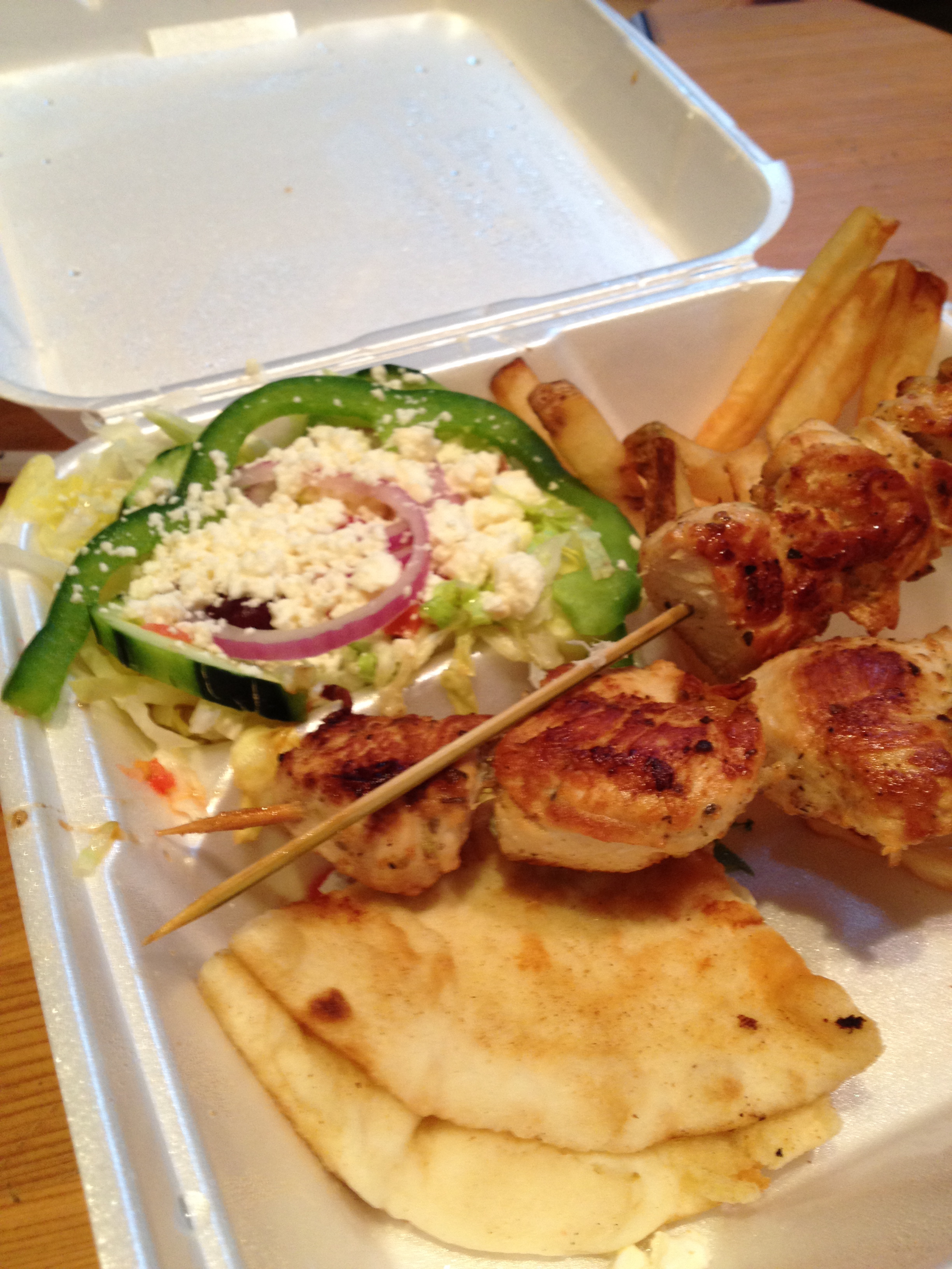 18.55 Äntligen hemma! Efter att ha kört runt och letat efter en sushirestaurang med överkomliga priser gick vi över till plan B istället och köpte grekiska grillspett. Mums!
