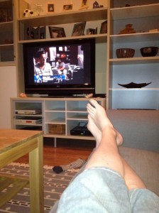 21.30 Ryggläge framför TV’n. Såg The Hangover, har inte sett den förut men den var riktigt kul!