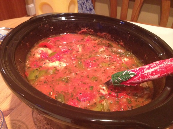 En av de första sakerna jag fick höra när vi flyttat hit var nödvändigheten av att införskaffa en crock-pot. Jag hade aldrig hört talas om vad det var förut, men det är en sorts gryta (nästan som en tryckkokare fast utan tryck) där man öser i alla ingredienser och så sätter man på den och låter den stå i 8-10 timmar nånting och sen har man en otroligt god gryta eller soppa eller vad det nu kan vara. Riktig slow food, med andra ord. Känns inte helt i linje med USA, snabbmatens förlovade land, men de är jättevanliga här i Södern i alla fall. Och bekvämt är det, man behöver ju inte vakta den utan det enda man gör är att skära allt i lämpliga bitar och kryddar, och sen kan man åka och jobba och så är maten klar när man kommer hem.